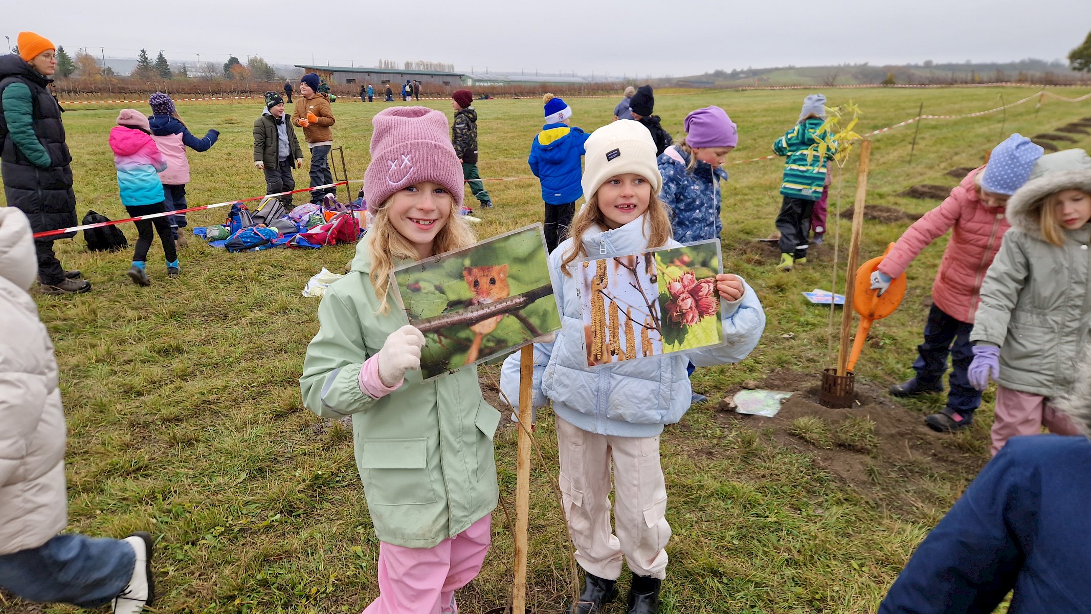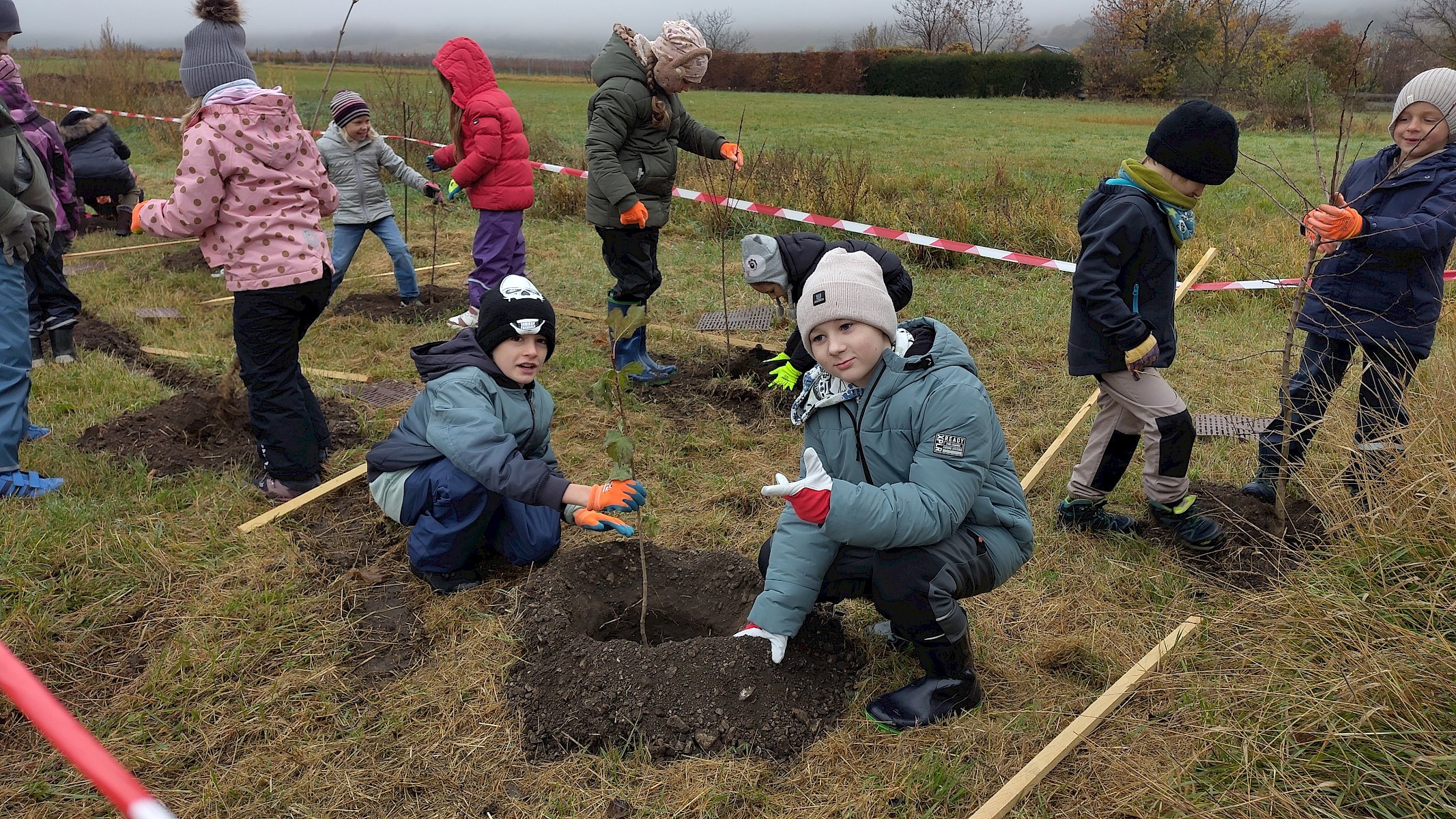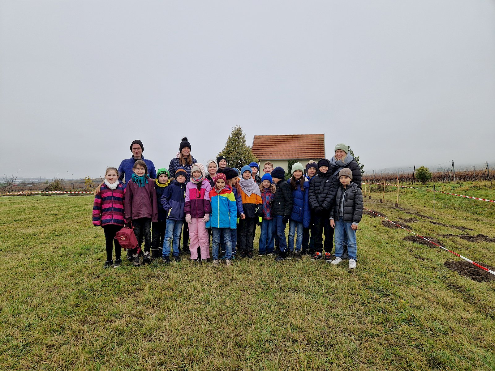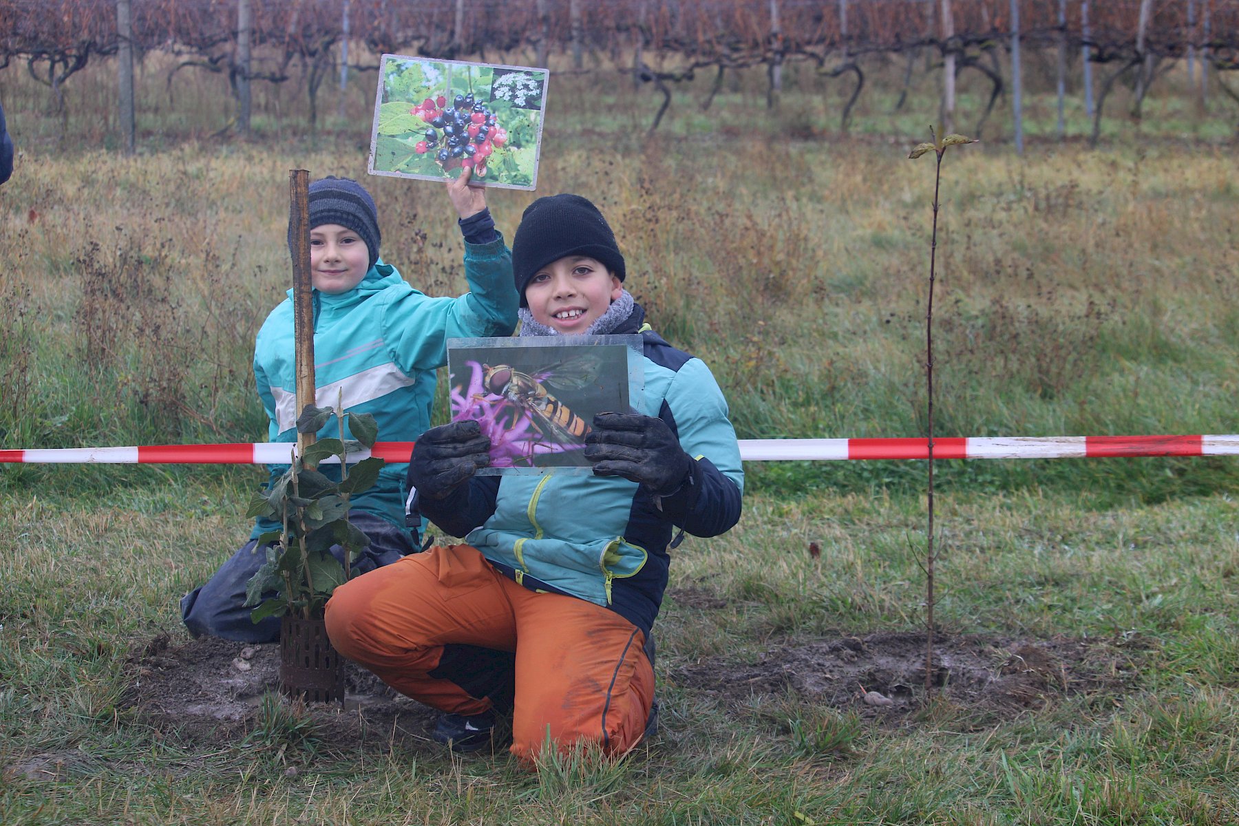 Nach der Auszeichnung ihres Projekts „Klassenzimmer in der Natur" beim Wettbewerb Changemaker #nature von Blühendes Österreich, BILLA gemeinnützige Privatstiftung packten nun alle Klassen der Volksschule Gumpoldskirchen gemeinsam bei der Umsetzung an. An zwei Tagen waren 147 Schüler:innen beteiligt und wurden fachlich sowie pädagogisch von unseren Naturpädagog:innen angeleitet und betreut. Im Rahmen des Projekts pflanzten sie auf einer ein Mal jährlich gemähten Wiese, im Eigentum der Marktgemeinde Gumpoldskirchen, in der Flur Steinfeld eine artenreiche Hecke aus heimischen Sträuchern aus regionaler Gehölzvermehrung (RGV).