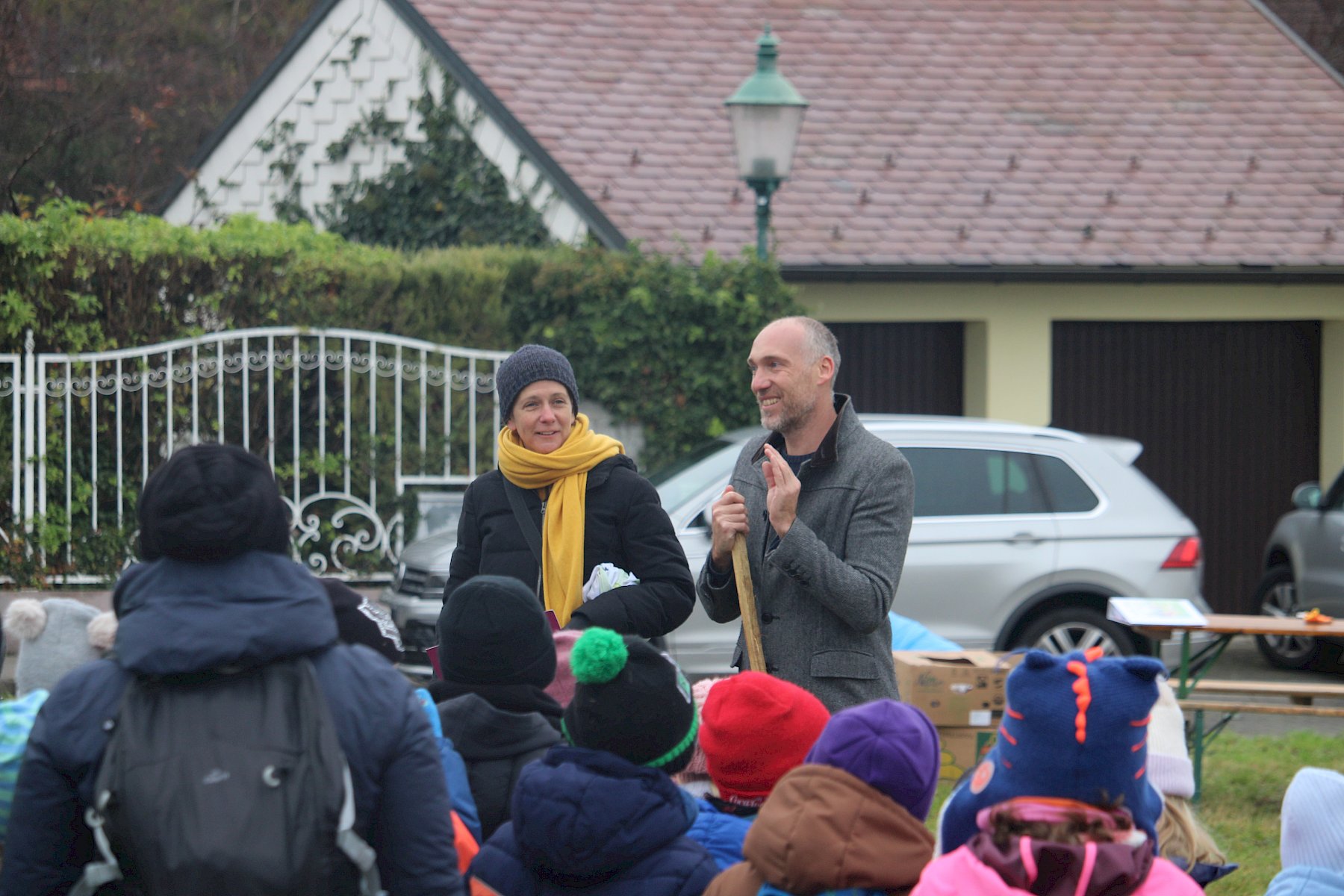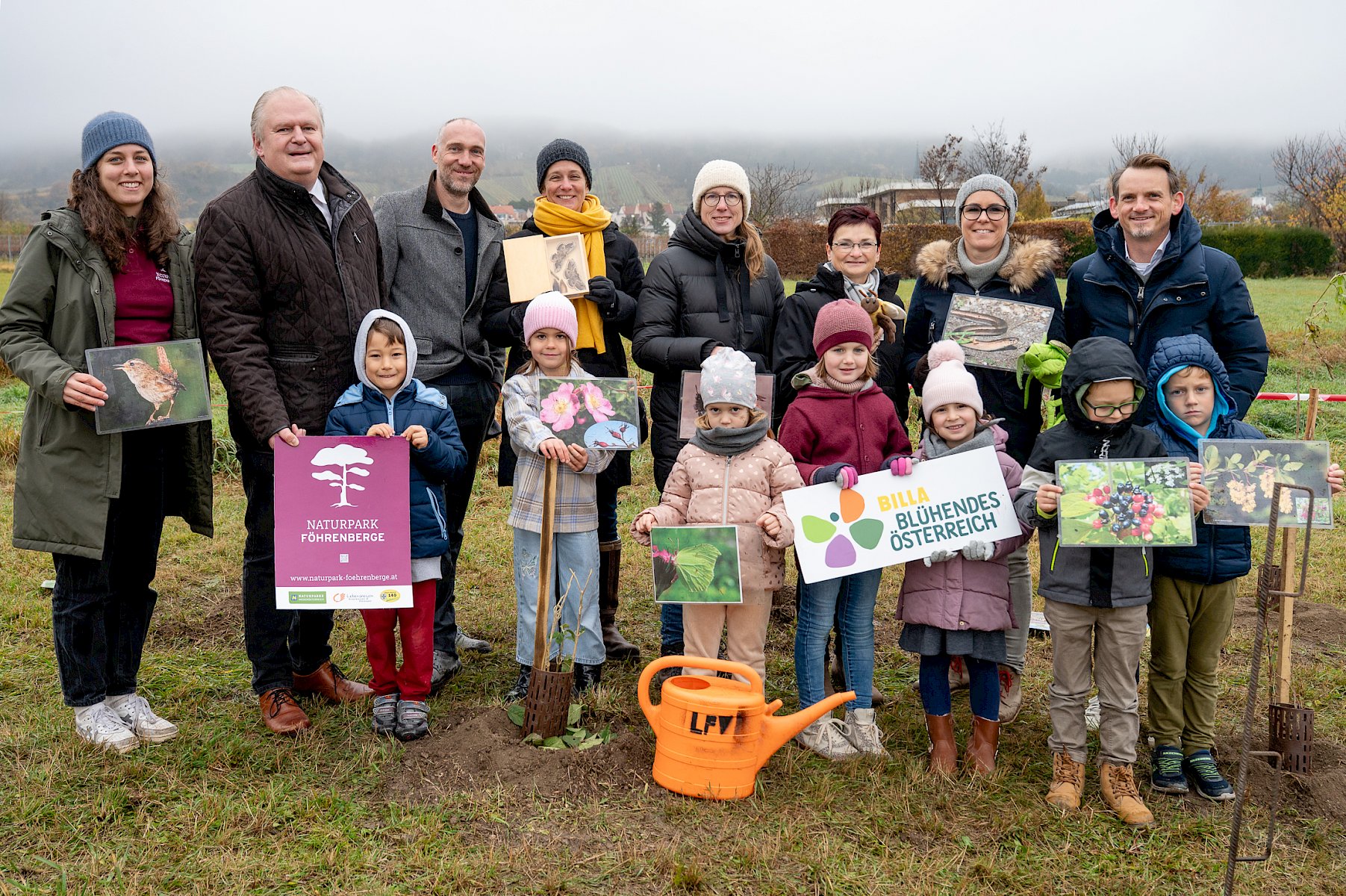 Besuch bekamen die Schüler:innen von Ronald Würflinger (Generalsekretär Blühendes Österreich) und Stefan Weinlich (BILLA Vertriebsdirektor NÖ), Irene Drozdowski (Obfrau Landschaftspflegeverein), Bürgermeisterin Dagmar Händler, Umweltgemeinderätin Maria von Balthazar, Markus Wildeis (Geschäftsführer Naturpark Föhrenberge) und Sarah Leischner (Landschaftspflegeverein für den Naturpark Föhrenberge), die sich über die Begeisterung der Kinder bei der Pflanzarbeit freuten.