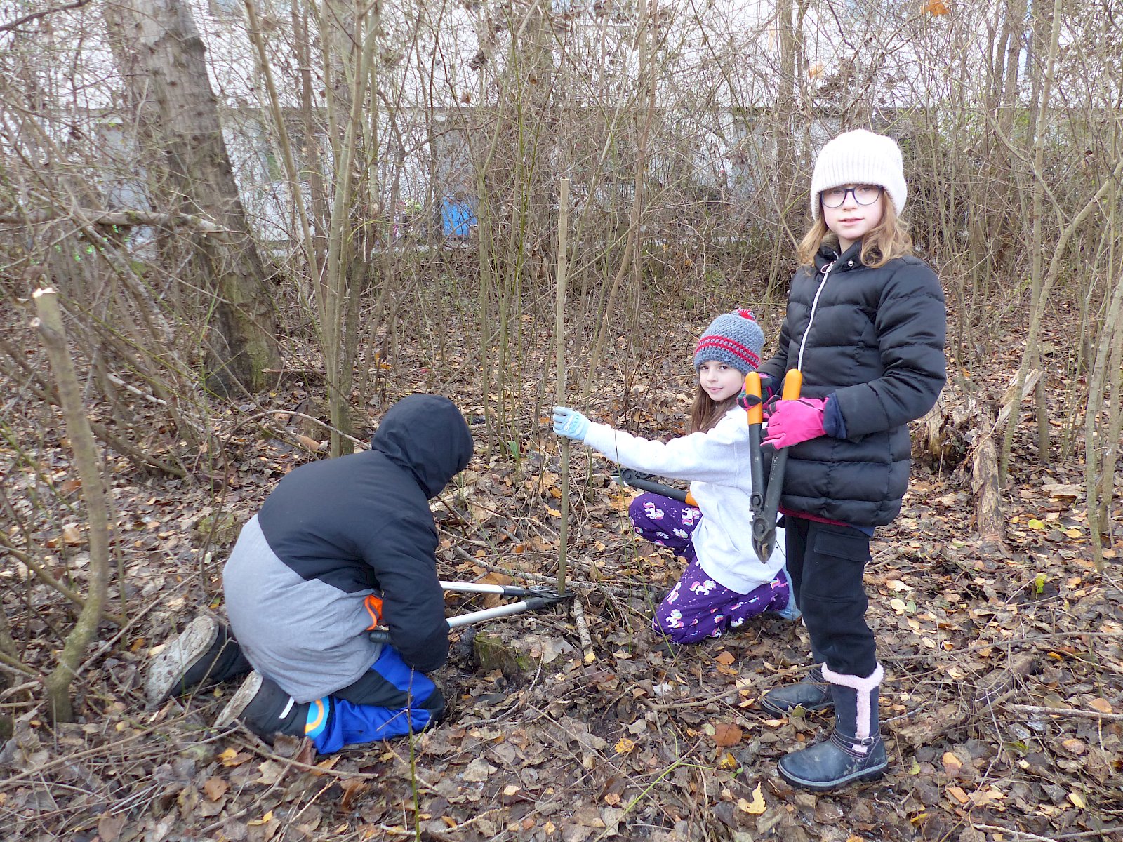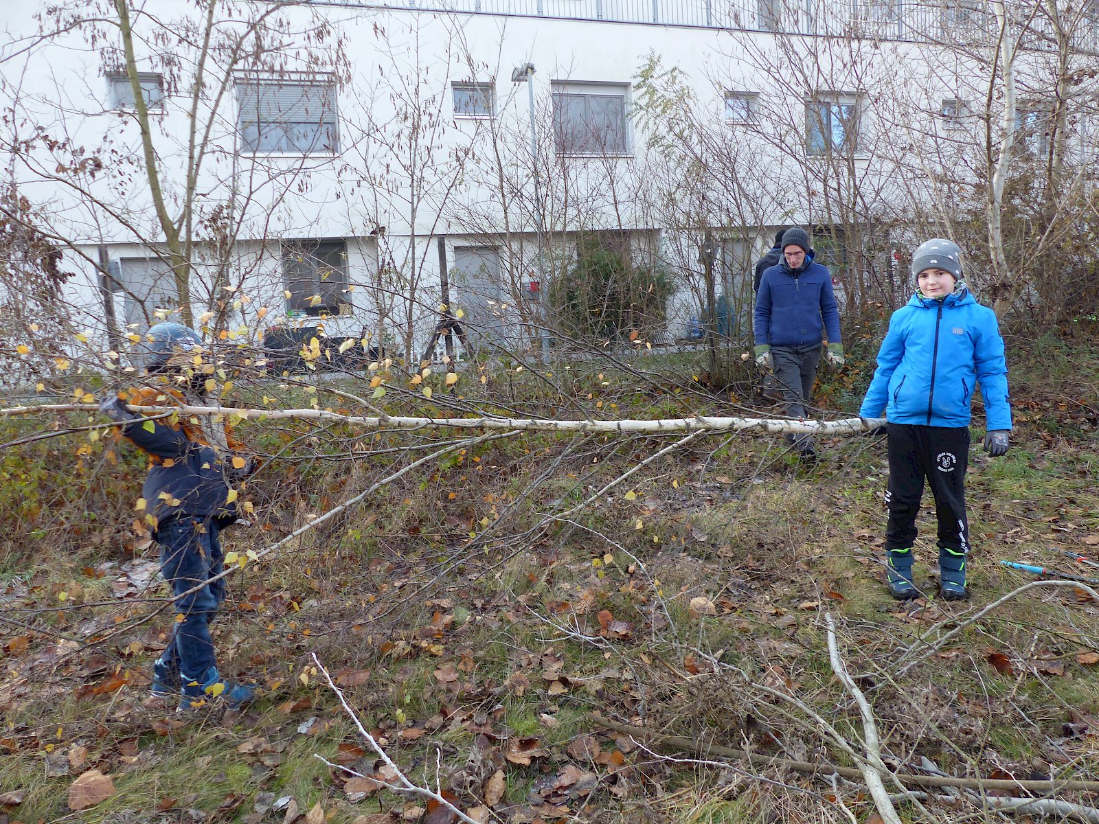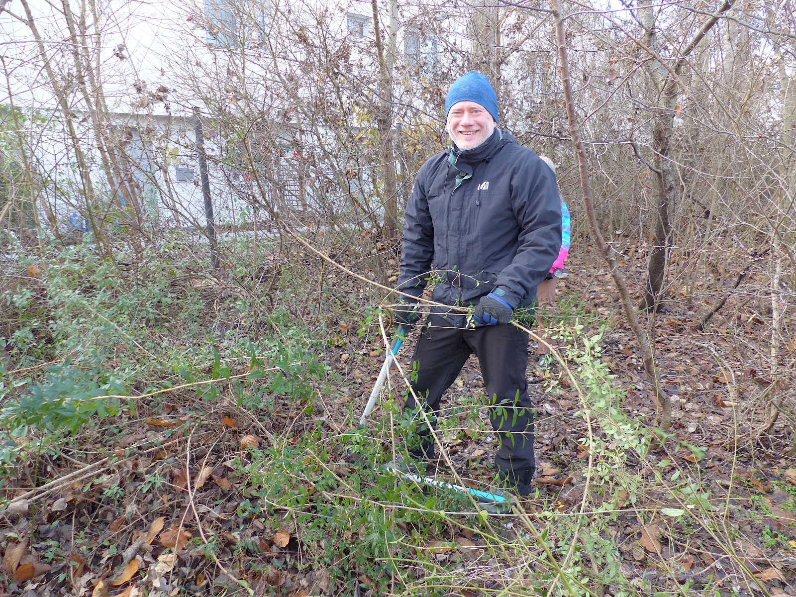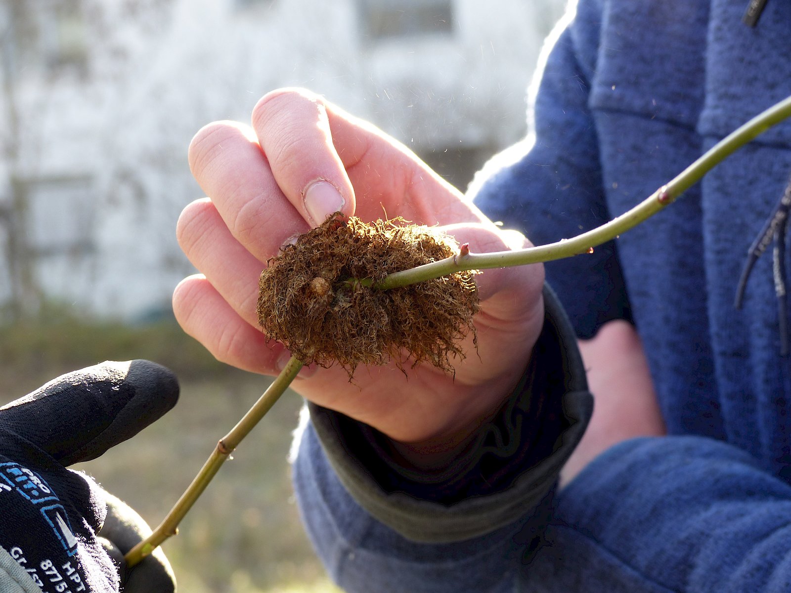 Das anfallende Astmaterial wurde zu einem Totholzhaufen aufgeschichtet, der künftig als wertvoller Rückzugsraum für zahlreiche Insekten, Reptilien und Kleintiere dient. Ein besonderes Highlight war der Fund einer Galle der Rosengallwespe (Diplolepis rosae), der eindrucksvoll zeigte, wie vielfältig die Stadtwildnis ist.
