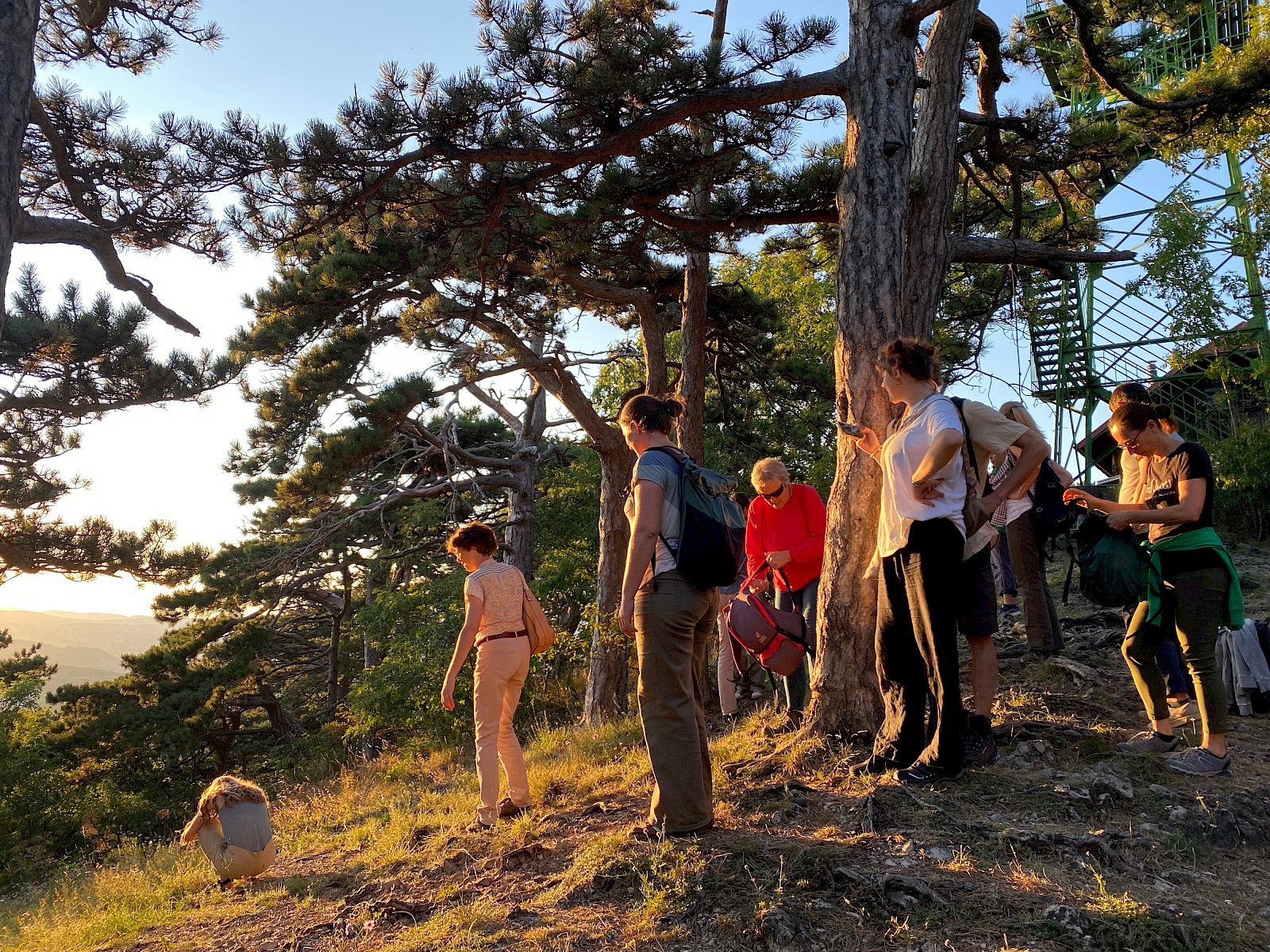 Am Ziel der Führung, der Kammersteinhütte, wurden alle mit der untergehenden Sonne und einem wunderschönen Ausblick über den Wienerwald und die Stadt Wien belohnt.