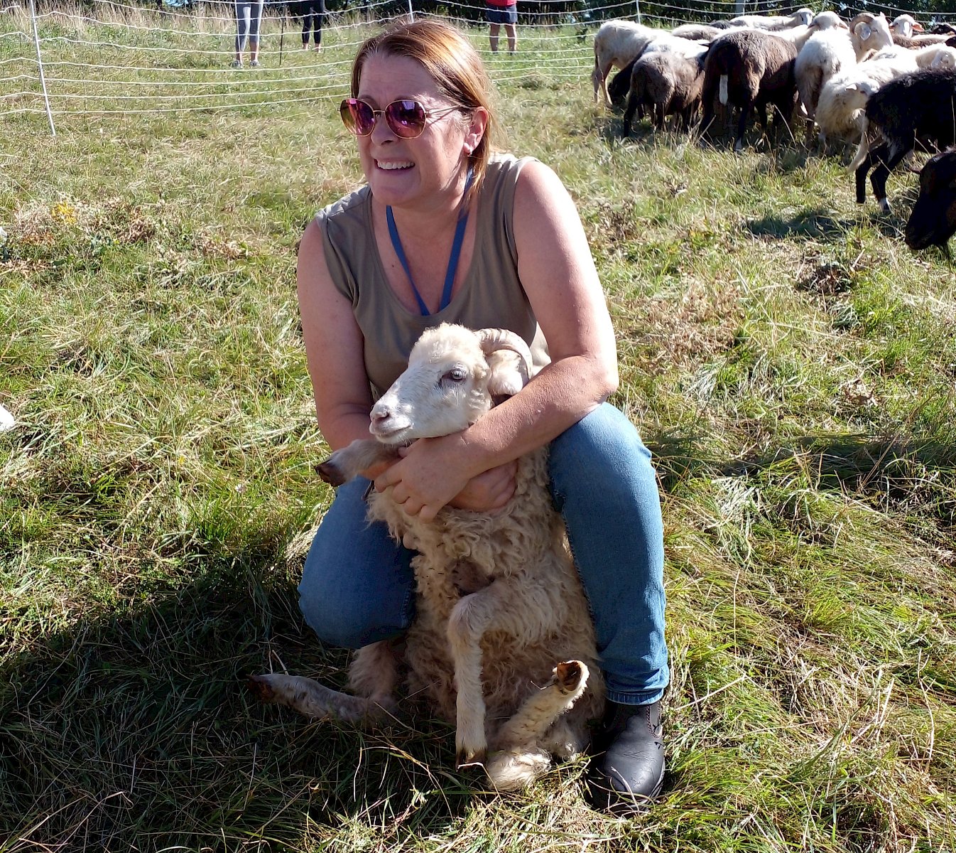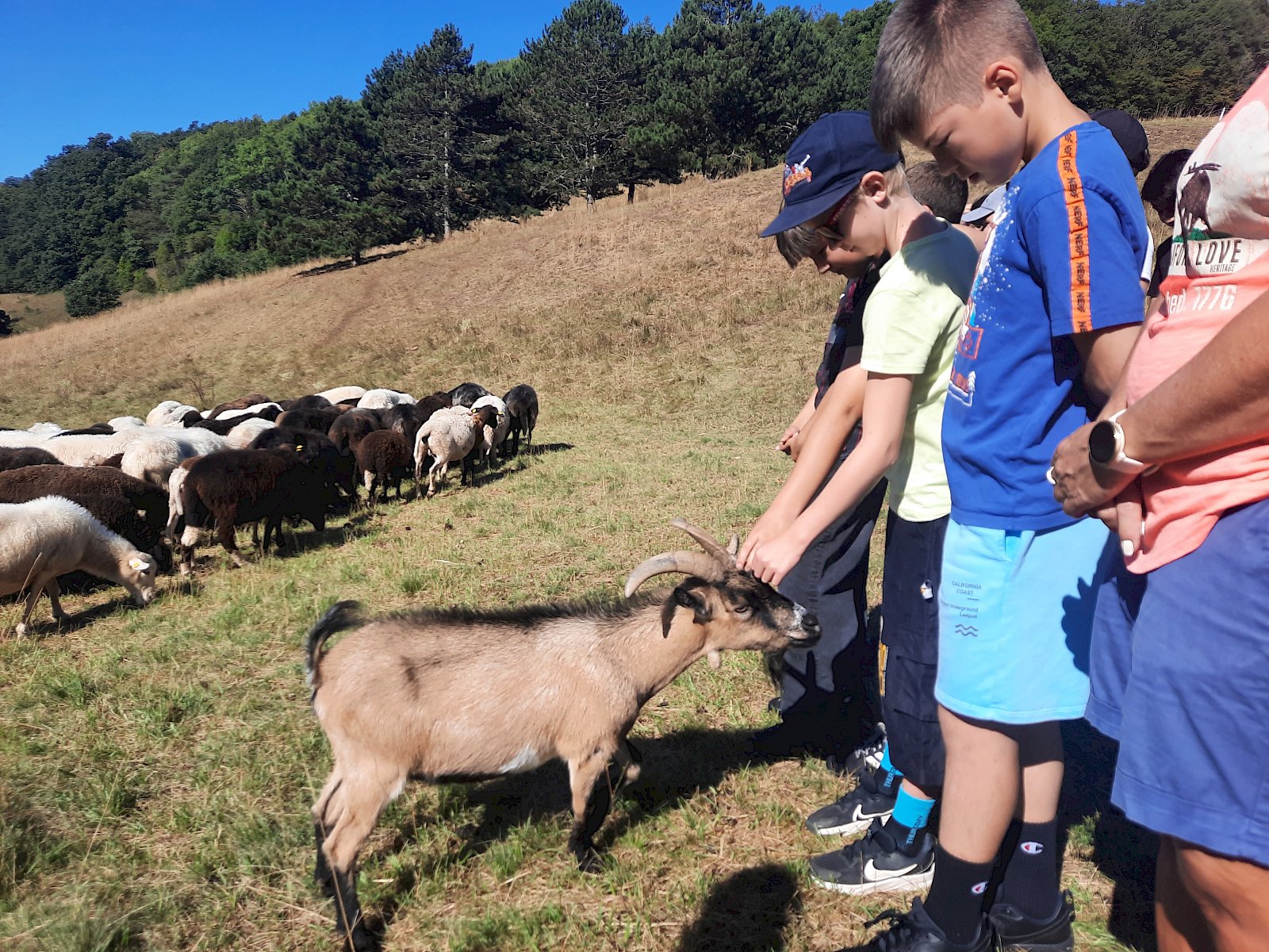 Ein besonderes Highlight war der Besuch bei Schäferin Christa Veits, ihrem Hütehund Fin und ihren Schafen. Es gab spannende Einblicke in die Arbeit der Schäferin und ihren Beitrag zum Naturschutz und zum Erhalt der Gießhübler Heide. Fasziniert beobachteten die Kinder, wie der Hütehund die Schafe lenkte und es dafür nur weniger Kommandos der Schäferin bedurfte. Da war es gar nicht leicht, sich wieder loszureißen und nach einer ordentlichen Streicheleinheit für Schaf, Ziege und Hütehund Fin zur nächsten Station weiterzugehen.