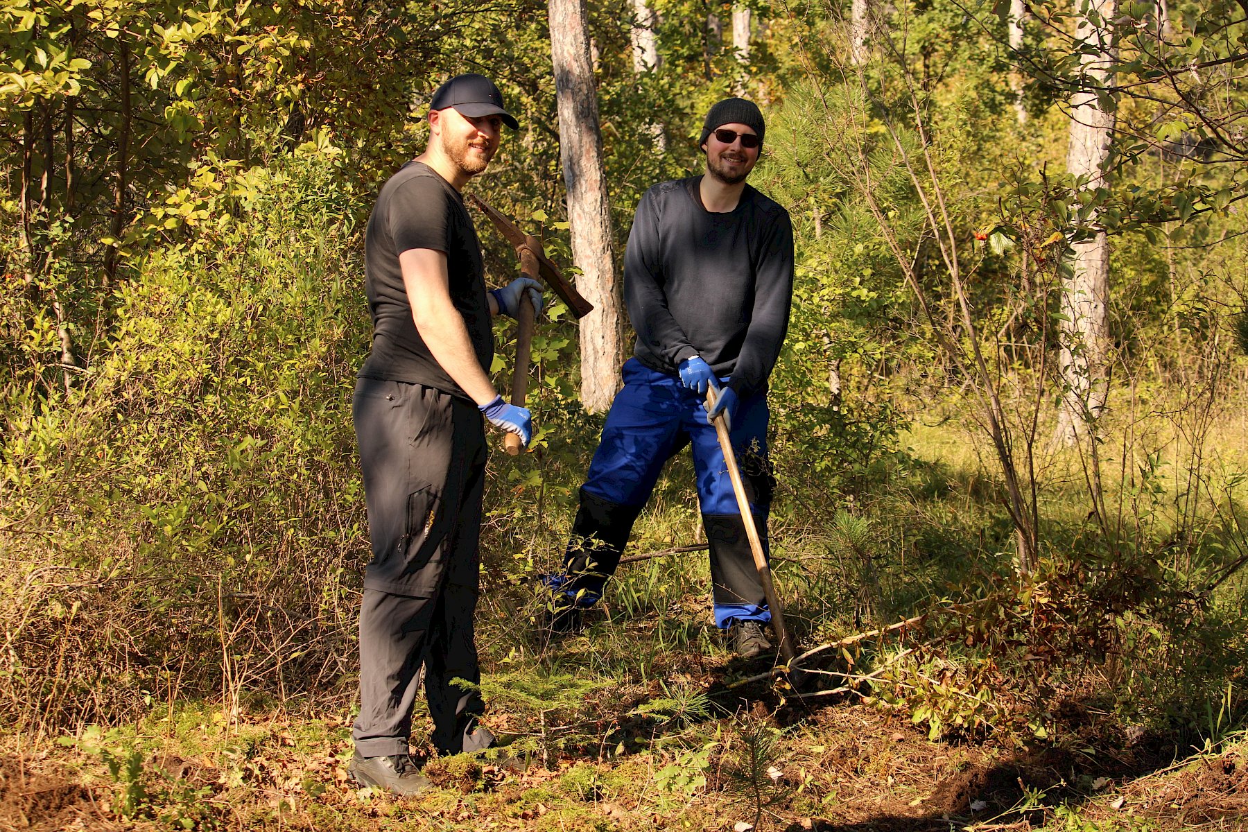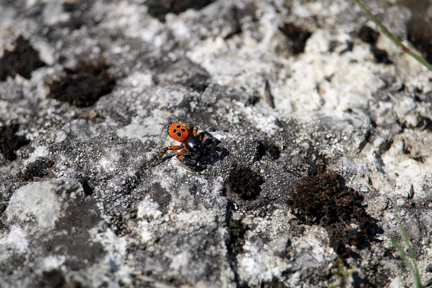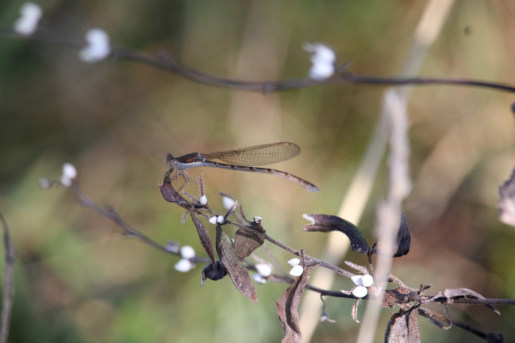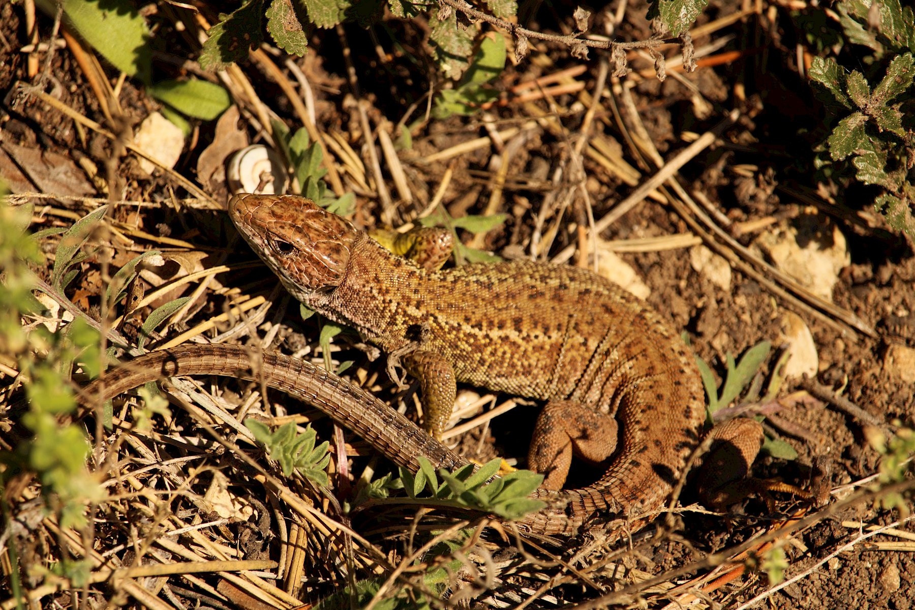 Neben der Arbeit gab es auch einiges zu bestaunen: Spinnen, Pilze am Totholz, Schmetterlinge und Winterlibellen (Sympecma fusca), die im Gegensatz zu vielen anderen Libellenarten den Winter als erwachsenes Tier an windgeschützten Waldrändern, meist einige Kilometer vom Gewässer entfernt, verbringt. Besonders gefreut hat uns heute eine Sichtung einer Smaragdeidechse (Lacerta viridis) und einer Roten Röhrenspinne (Eresus kollari).