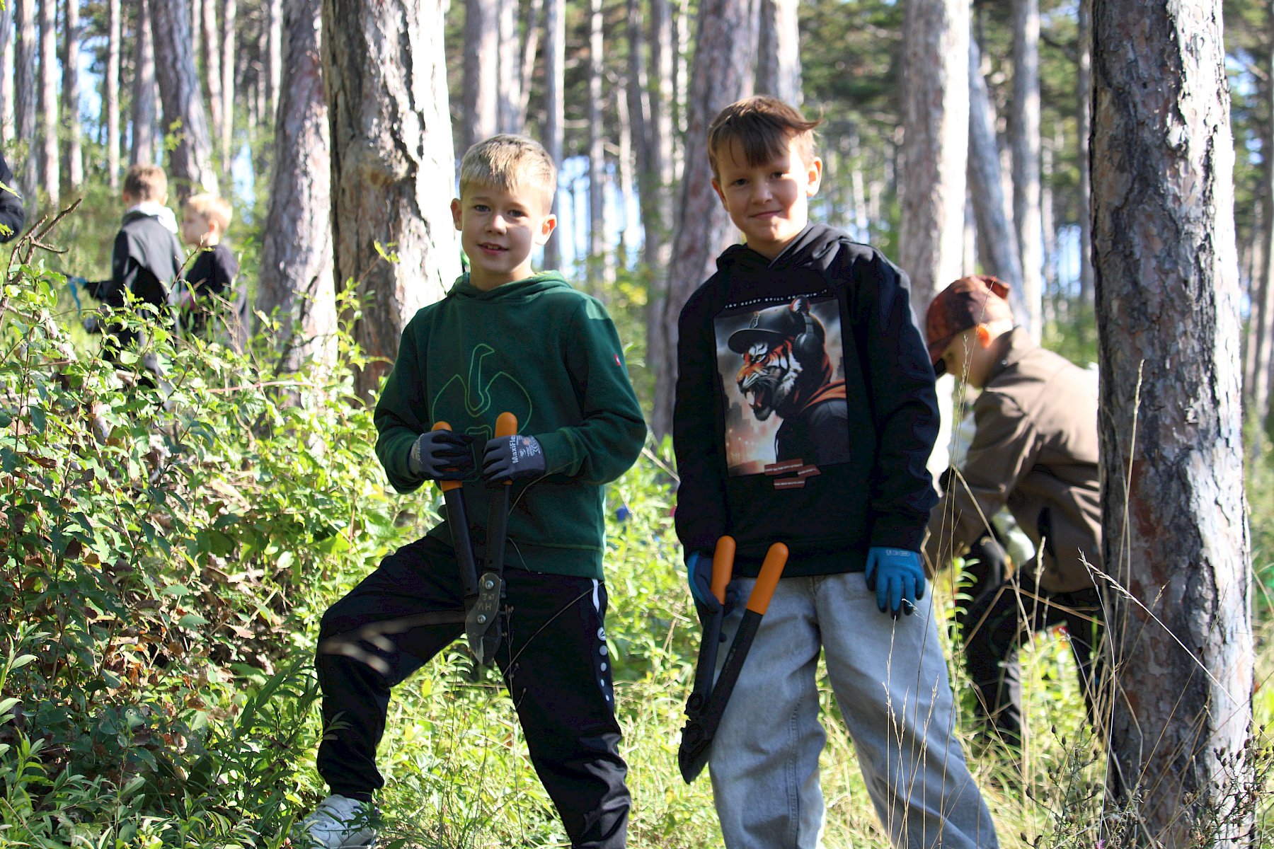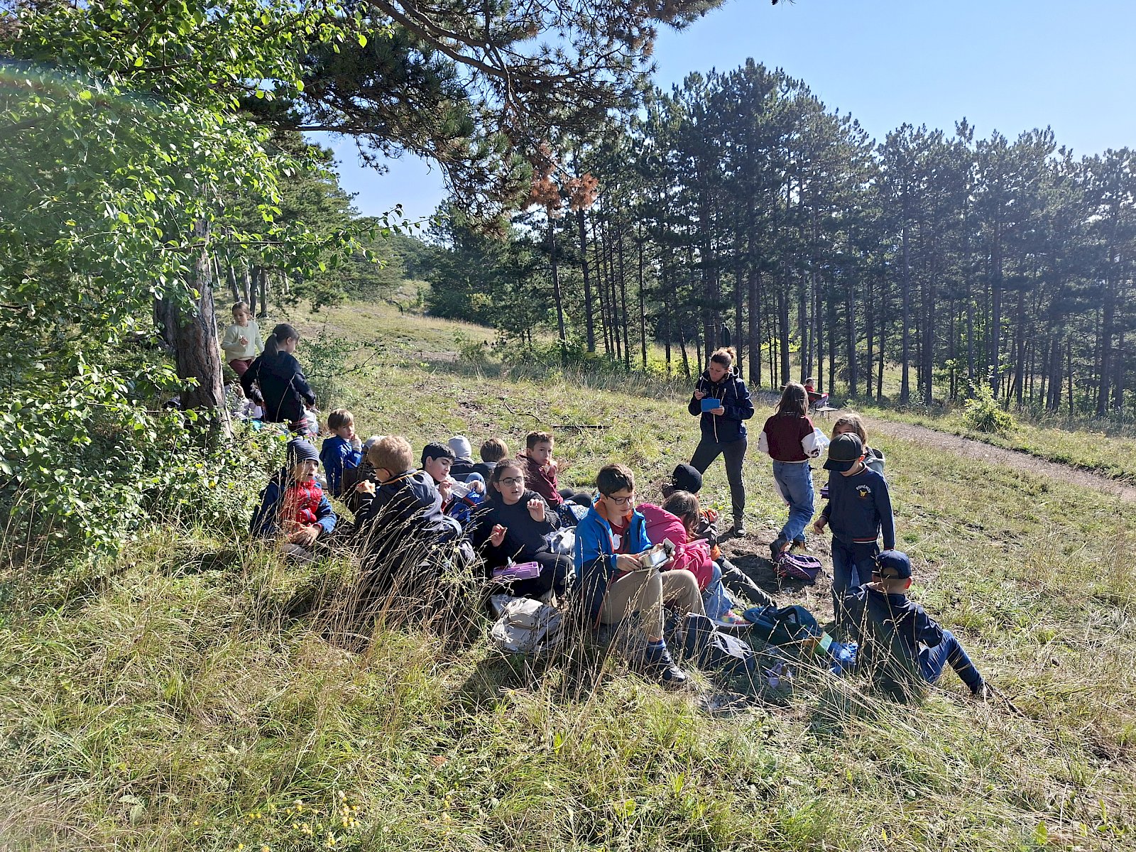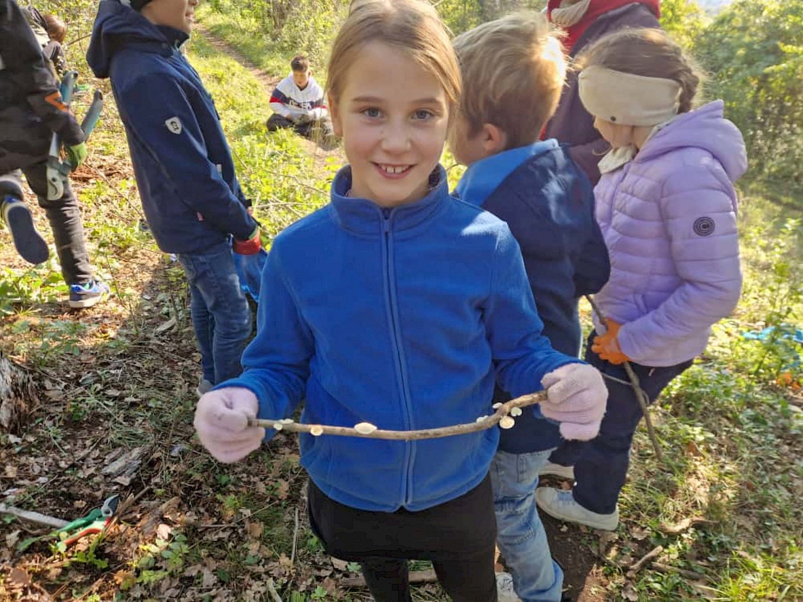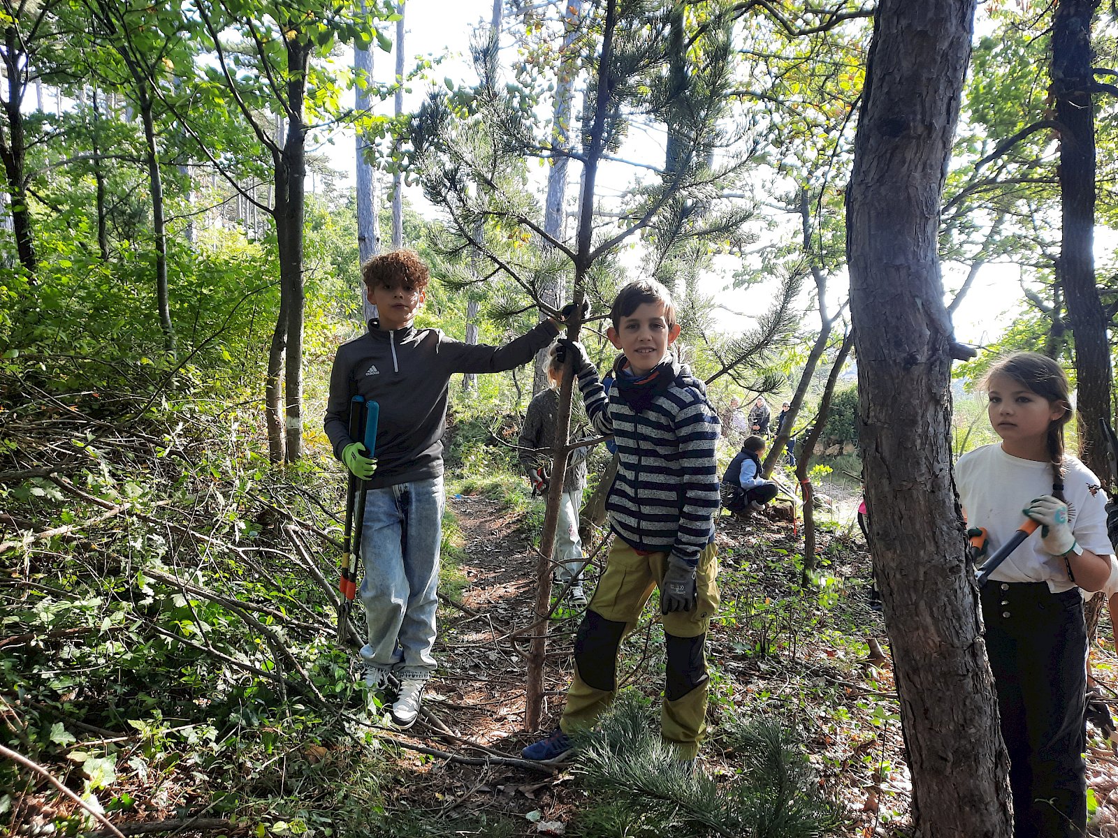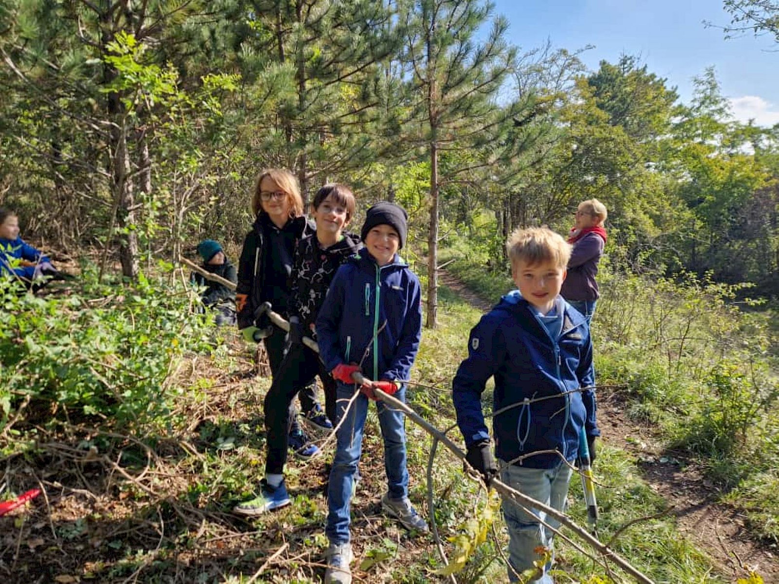 Heute am dritten Tag der Trockenrasen Pflegetage in Bad Vöslau waren 85 Schüler:innen der 3a, 3b, 4a und 4b der VS Gainfarn im Einsatz am Sonnenweg, um die wertvollen Naturflächen in ihrer Gemeinde zu pflegen. Unsere Naturpädagog:innen vermittelten den Kindern zunächst viel über den Lebensraum Trockenrasen, über die besonderen Tiere und Pflanzen und den großen Artenreichtum. Nach einer gewissenhaften Einschulung zum Werkzeuggebrauch und der Arbeitssicherheit ging es dann motiviert und mit viel Engagement und Freude an die Arbeit. Ausgerüstet mit Astscheren und Sägen wurden Liguster, Waldrebe und kleine Bäume entfernt, um die offene Trockenrasenfläche zu vergößern und mehr Platz für die wertvollen Arten zu schaffen.