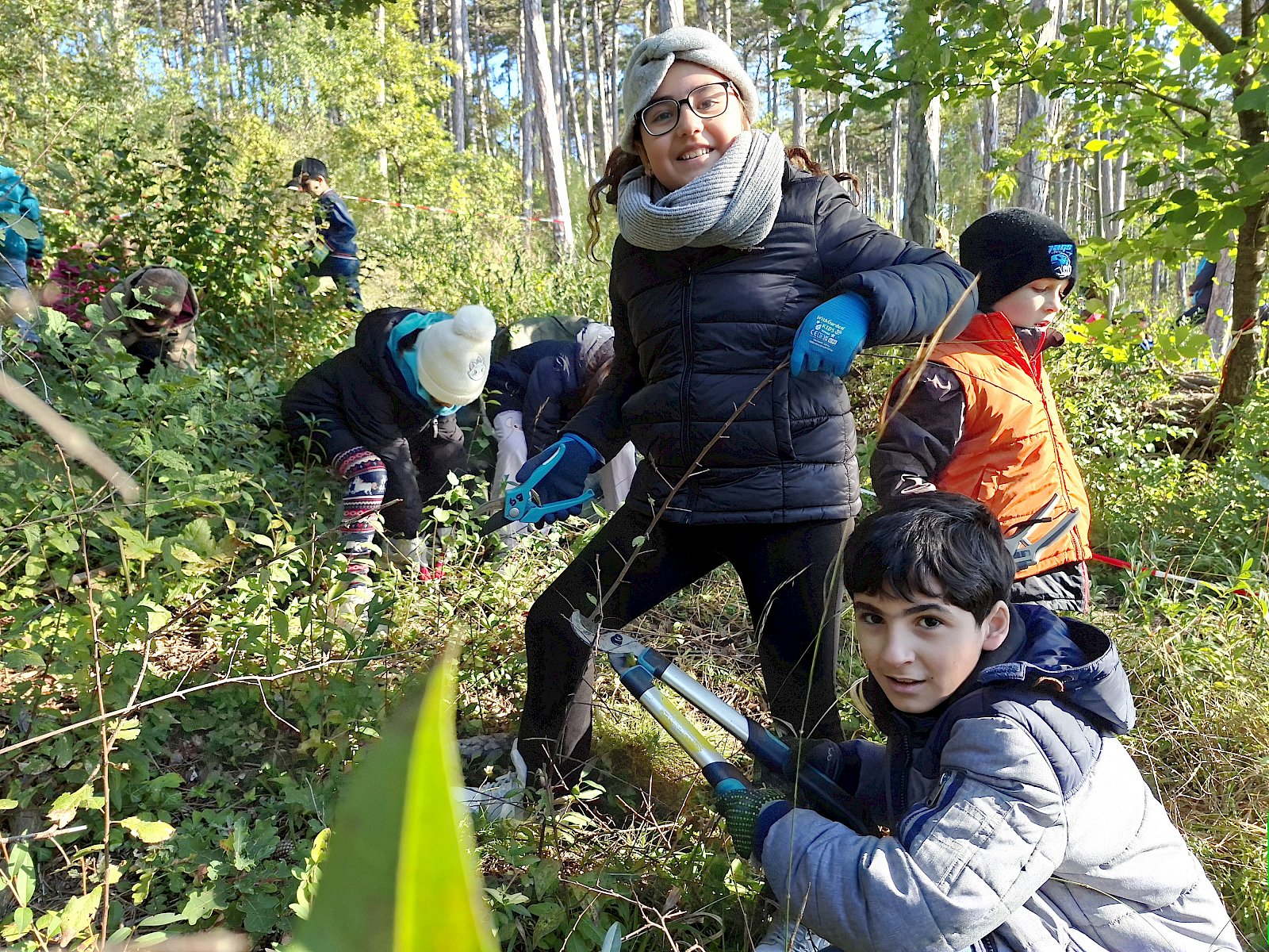 Neben den fließigen Kindern arbeiteten heute auch vormittags 13 und nachmittags 12 Erwachsene auf den Flächen. Tatkräftige Unterstützung bekamen wir heute auch auch von sieben Mitarbeiter:innen der Vienna Insurance Group und Local Hero Helga Eichwalder-Gabler auf deren wertvolle Mithilfe wir uns schon seit vielen Jahren verlassen können.