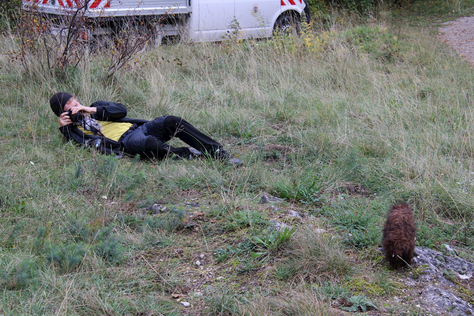 Zwischendurch gab es heute spannende Funde: im Totholz befand sich das Nest von Stöpselkopfameisen (Colobopsis truncata) entdeckt. Deren Köpfe sind stark ausgeprägt und stöpselförmig abgeflacht, um damit Nesteingänge zu verschließen. Und eine Smaragdeidechse (Lacerta viridis) war aufgrund der geringen Temperaturen nicht mehr ganz so schnell unterwegs und ließ sich dadurch aus nächster Nähe betrachten.