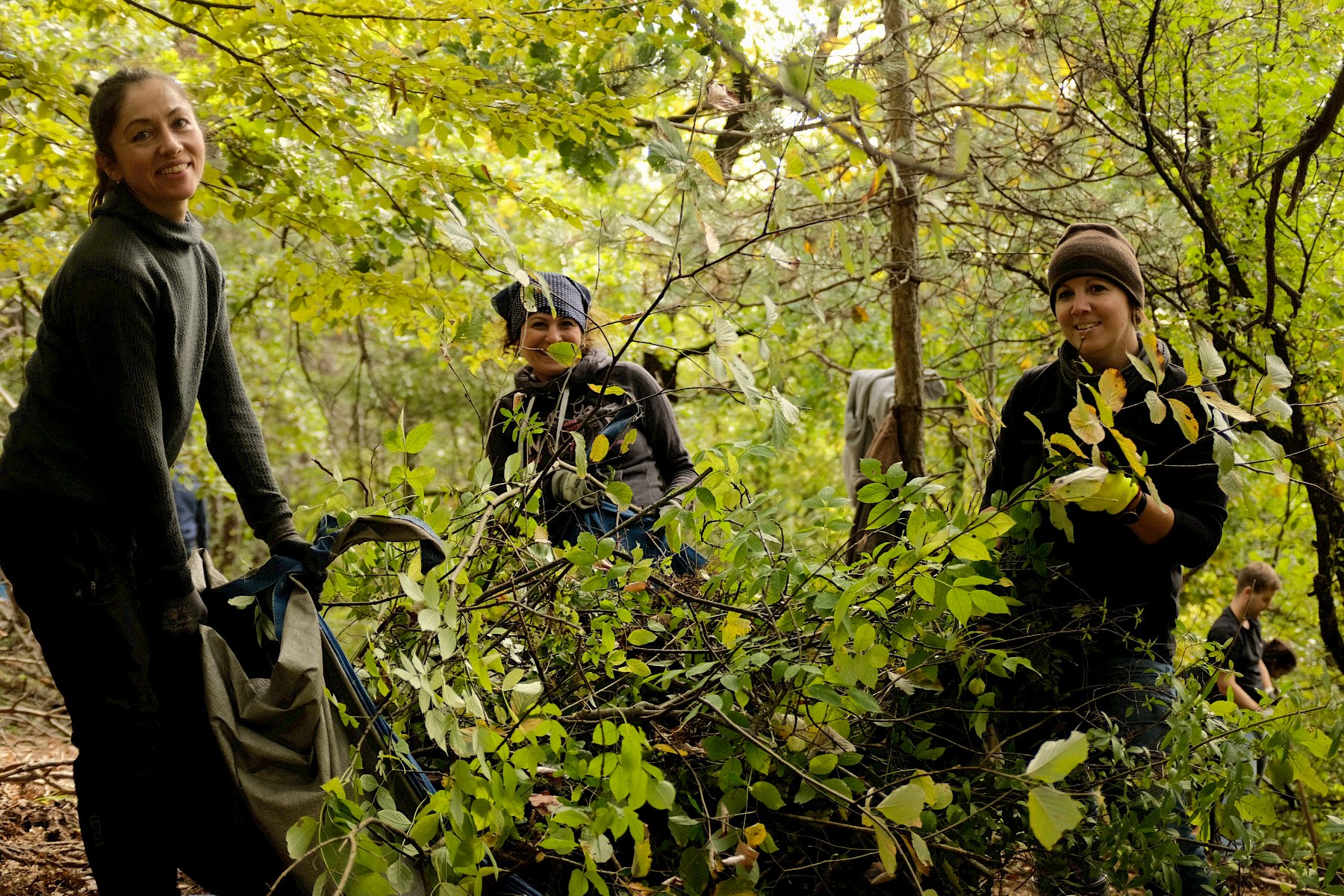 Nach dem Vortrag ging es direkt los mit der Arbeit. Die Mitarbeiter:innen der Allianz Elementar Versicherungs-AG waren hauptsächlich mit Krampen unterwegs, um Gehölze wie Liguster (Ligustrum vulgare), Feld-Ahorn (Acer campestre) und Esche (Fraxinus excelsior) auszuhacken. Auch nach der Mittagspause ging es mit vollem Elan weiter. Am Ende des Tages war der Großteil der Fläche fertig, die nun bereit ist für Fällarbeiten im kommenden Jahr. Dabei werden die großen Schwarzföhren entfernt, um den darunterliegenden Pflanzen mehr Licht zu bieten. Am Ende des Arbeitseinsatzes sind viele Planen mit Schnittgut weggetragen worden - ein erfolgreicher Tag für die Biodiversität.