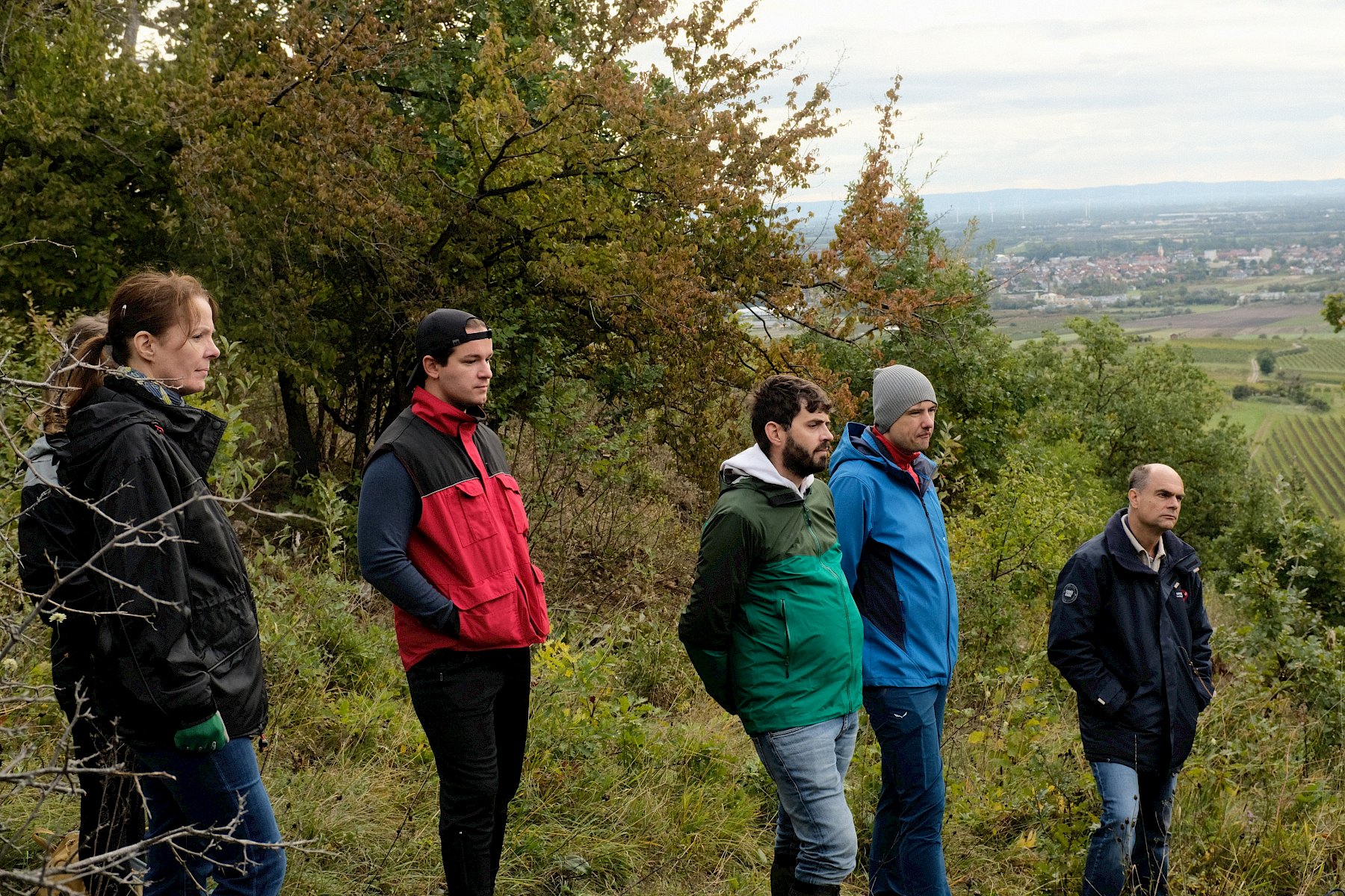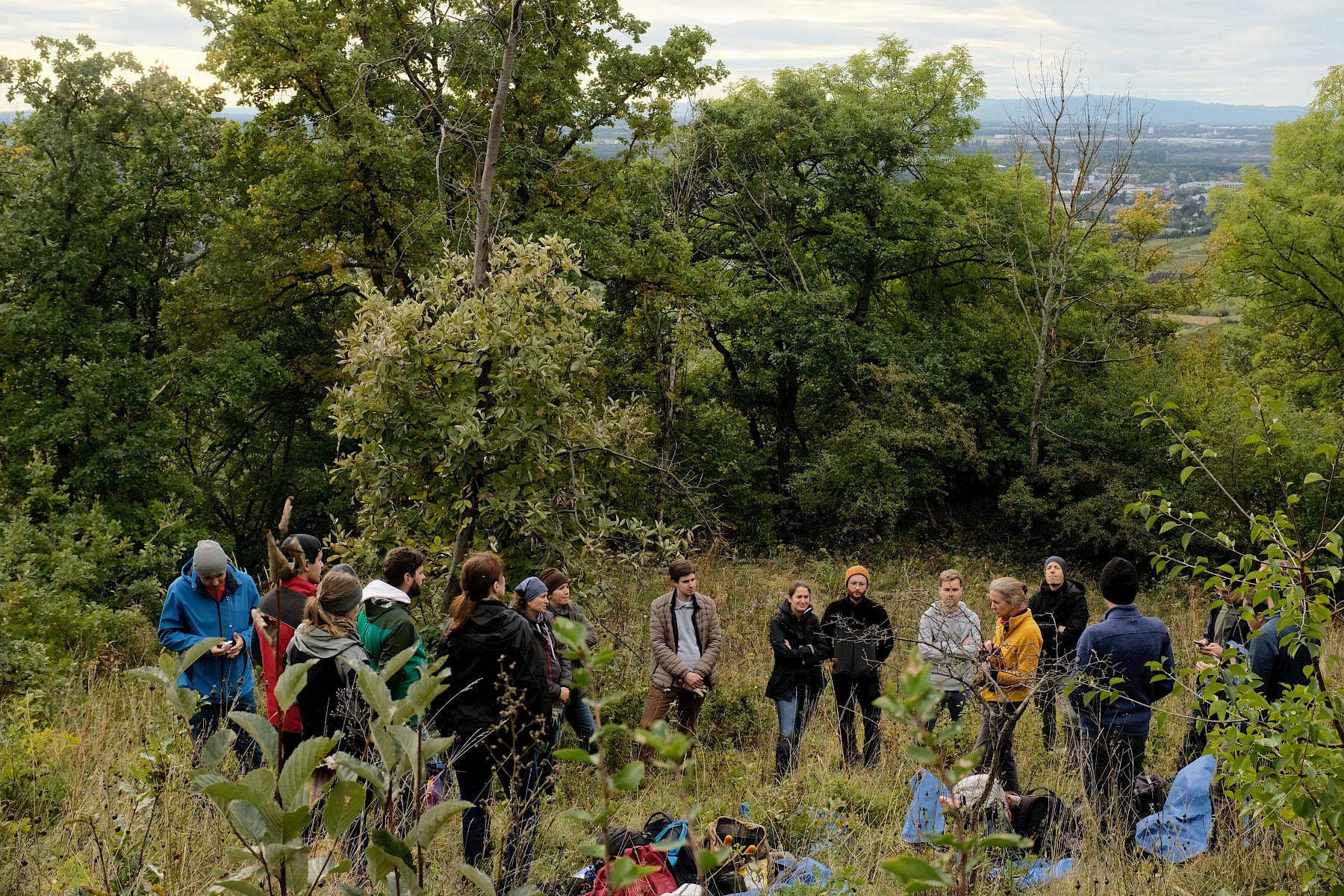 Heute, am ersten Tag unserer Trockenrasen-Pflegetage in Pfaffstätten, haben sich sechs Mitarbeiter:innen der Vienna Insurance Group AG und eine zweite CSR Gruppe zur Trockenrasenpflege eingefunden. Vom Parkplatz an der Weinstraße ging es mit dem Team des LPV zur Trockensteinmauer „Schaflermauer“, an der Krampen, Scheren und Planen ausgeteilt wurden. Mit dem Werkzeug ausgerüstet ging es weiter zum Fluxberg, der sich im Naturschutzgebiet Heferlberg-Glaslauterriegel-Fluxberg befindet. Dort angekommen erklärte Biologin Irene Drozdowski, wieso die Pflege der Trockenrasen so wichtig ist und gab einen spannenden Einblick in die Welt der besonderen Tier- und Pflanzenarten.
