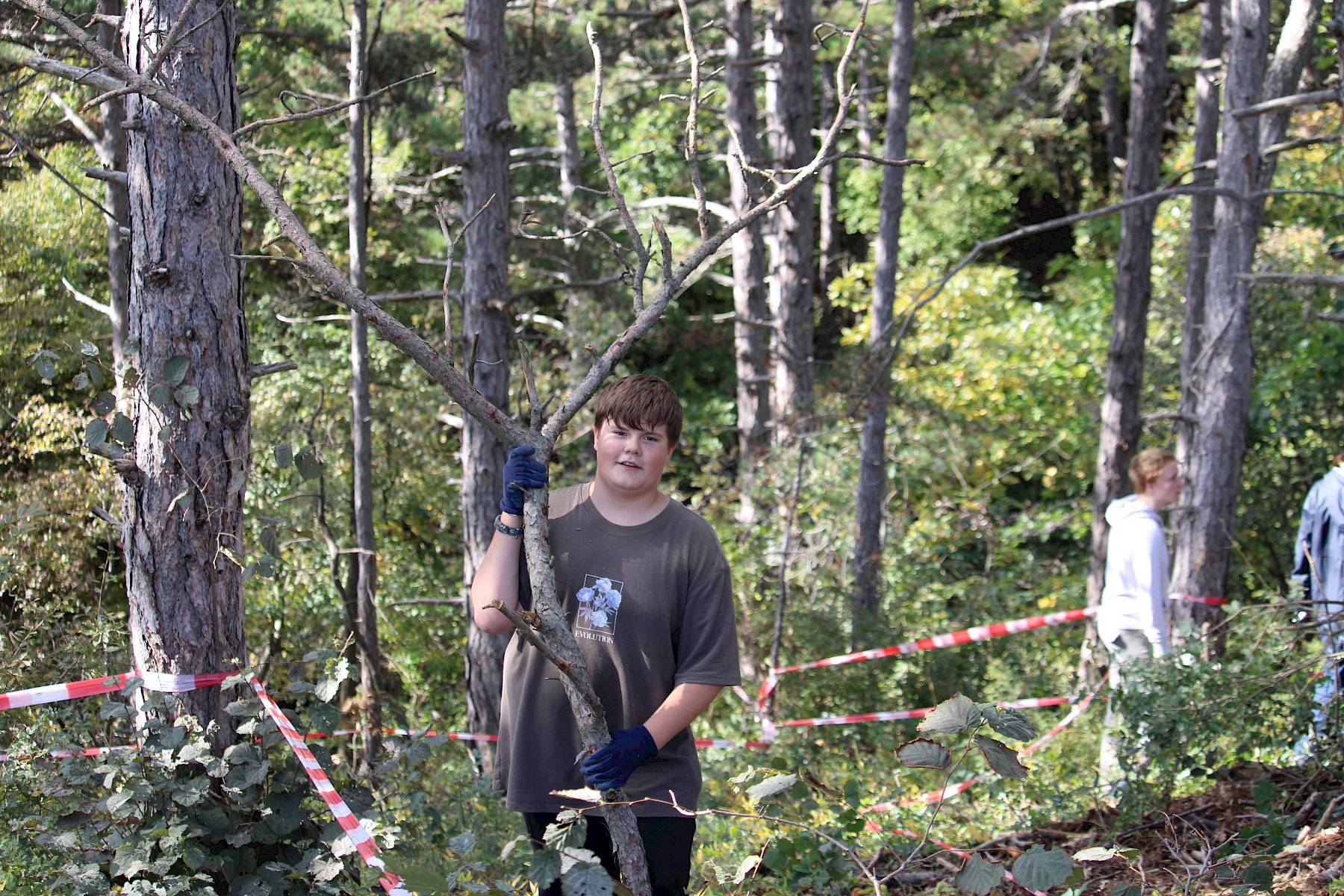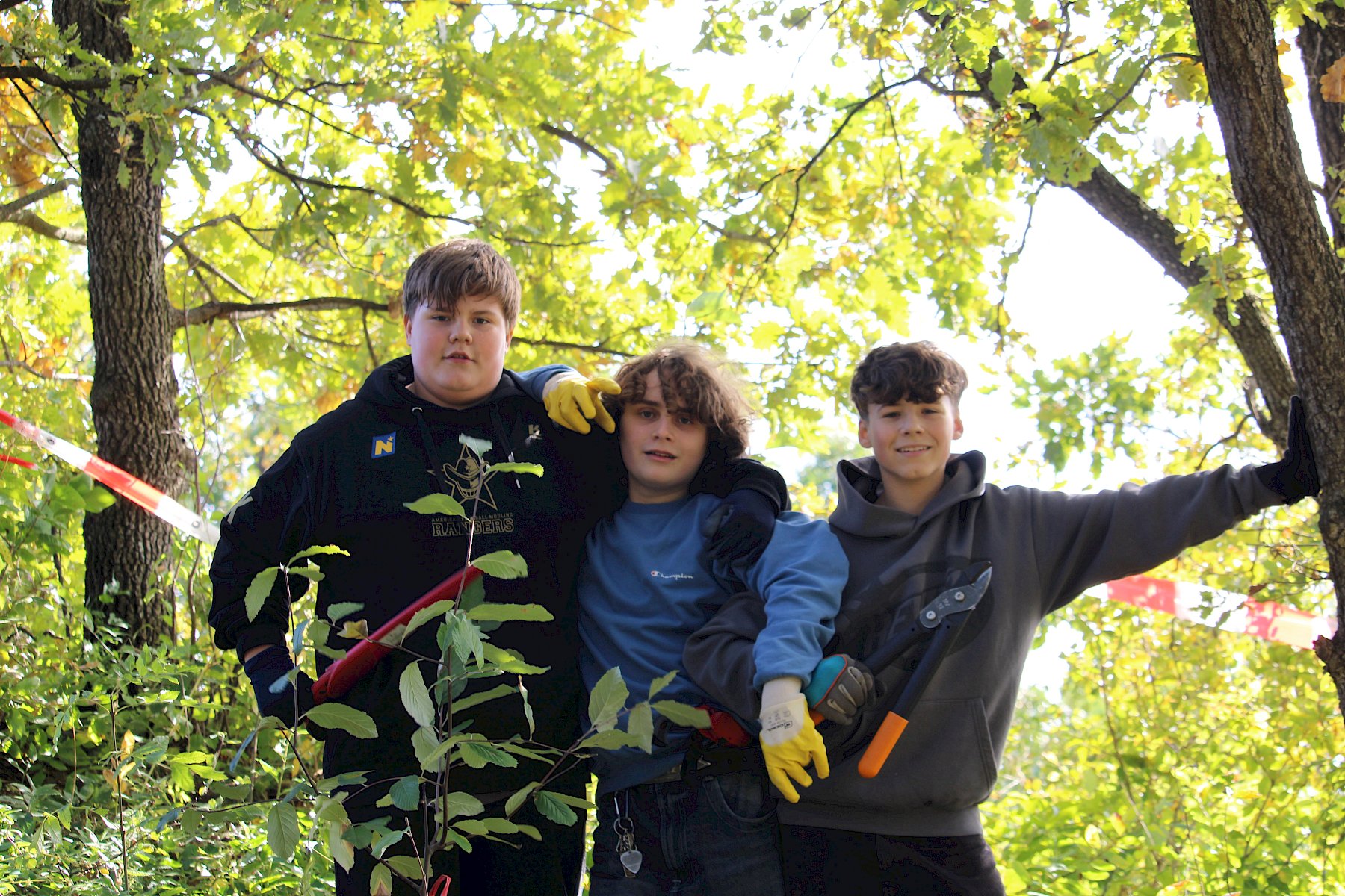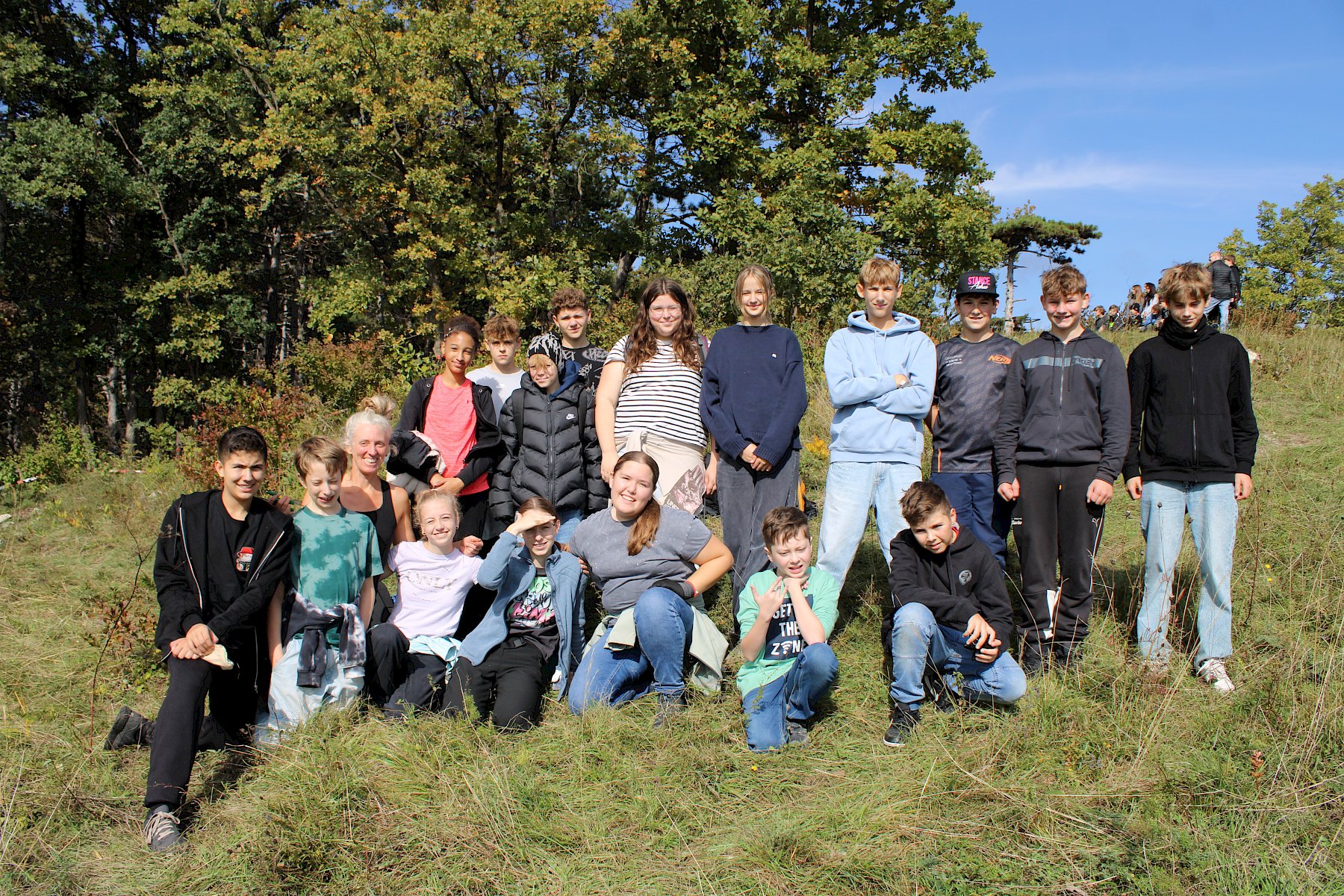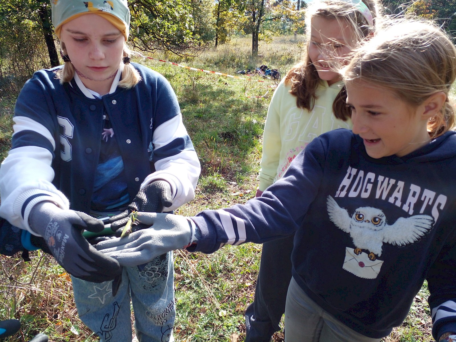Unsere Naturpädagog:innen vermittelten den Schüler:innen zunächst viel über den Lebensraum Trockenrasen, über die besonderen Tiere und Pflanzen und den großen Artenreichtum. Nach einer gewissenhaften Einschulung zum Werkzeuggebrauch und der Arbeitssicherheit ging es dann motiviert und mit viel Engagement und Freude los. Im Teamwork wurde geschnitten und gesägt, um in Zukunft neue Flächen für wertvollen und artenreichen Trockenrasen zu ermöglichen.