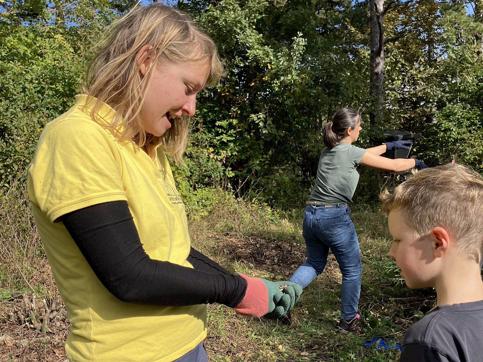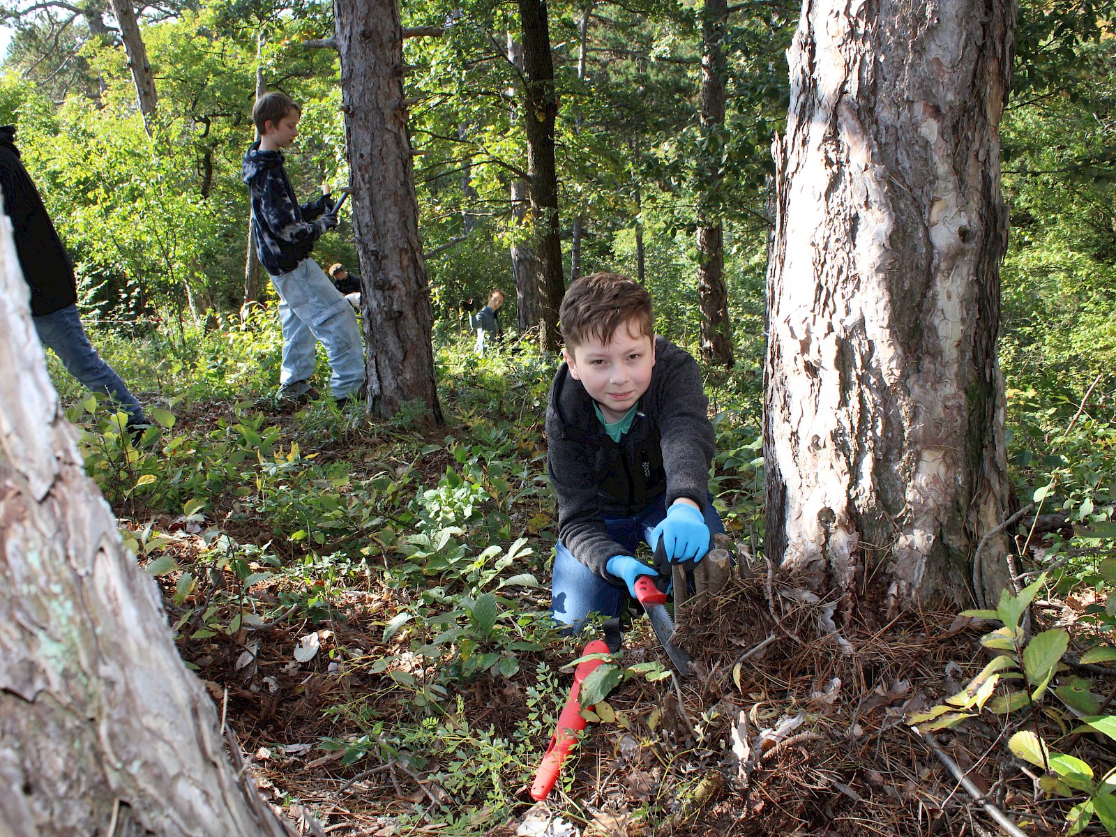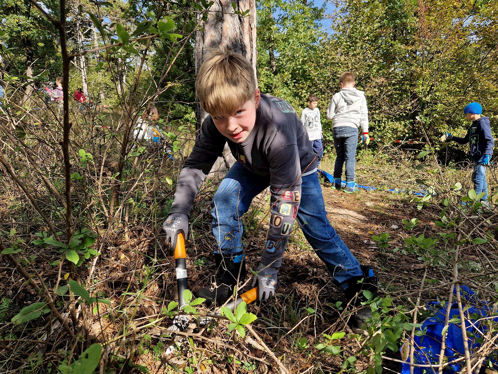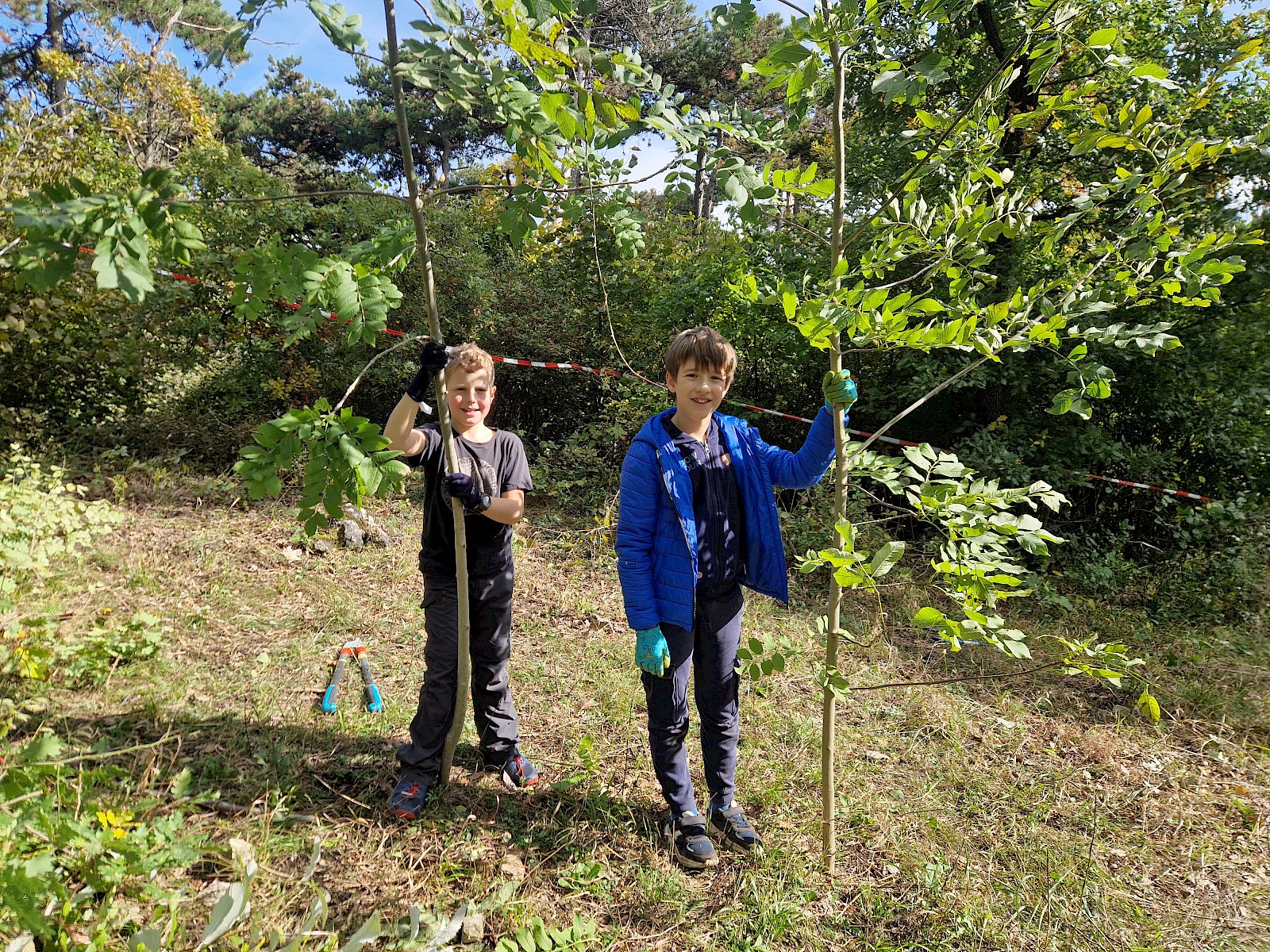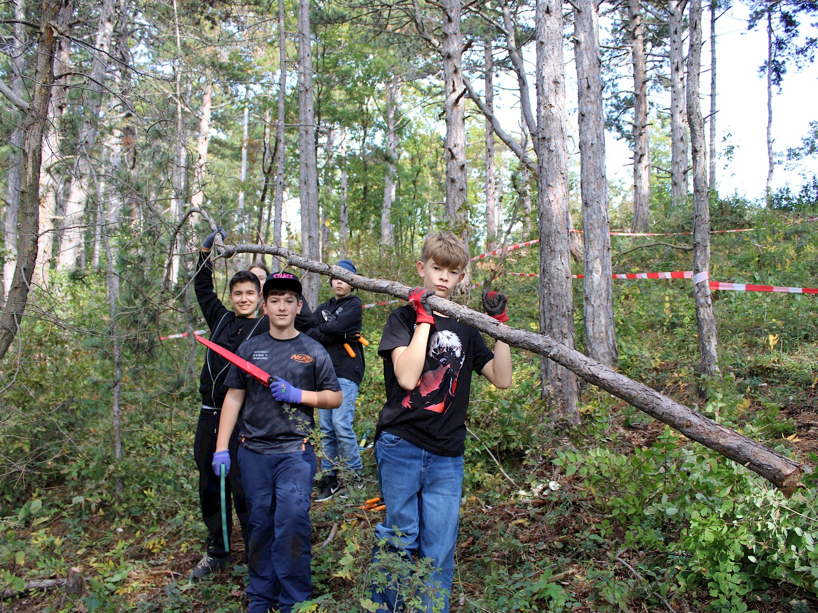 Unsere Naturpädagog:innen vermittelten den Schüler:innen zunächst viel über den Lebensraum Trockenrasen, über die besonderen Tiere und Pflanzen und den großen Artenreichtum. Nach einer gewissenhaften Einschulung zum Werkzeuggebrauch und der Arbeitssicherheit ging es dann motiviert und mit viel Engagement und Freude los. Im Teamwork wurde geschnitten und gesägt, um in Zukunft neue Flächen für wertvollen und artenreichen Trockenrasen zu ermöglichen.