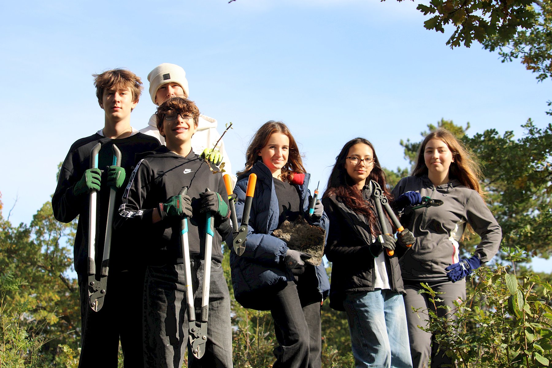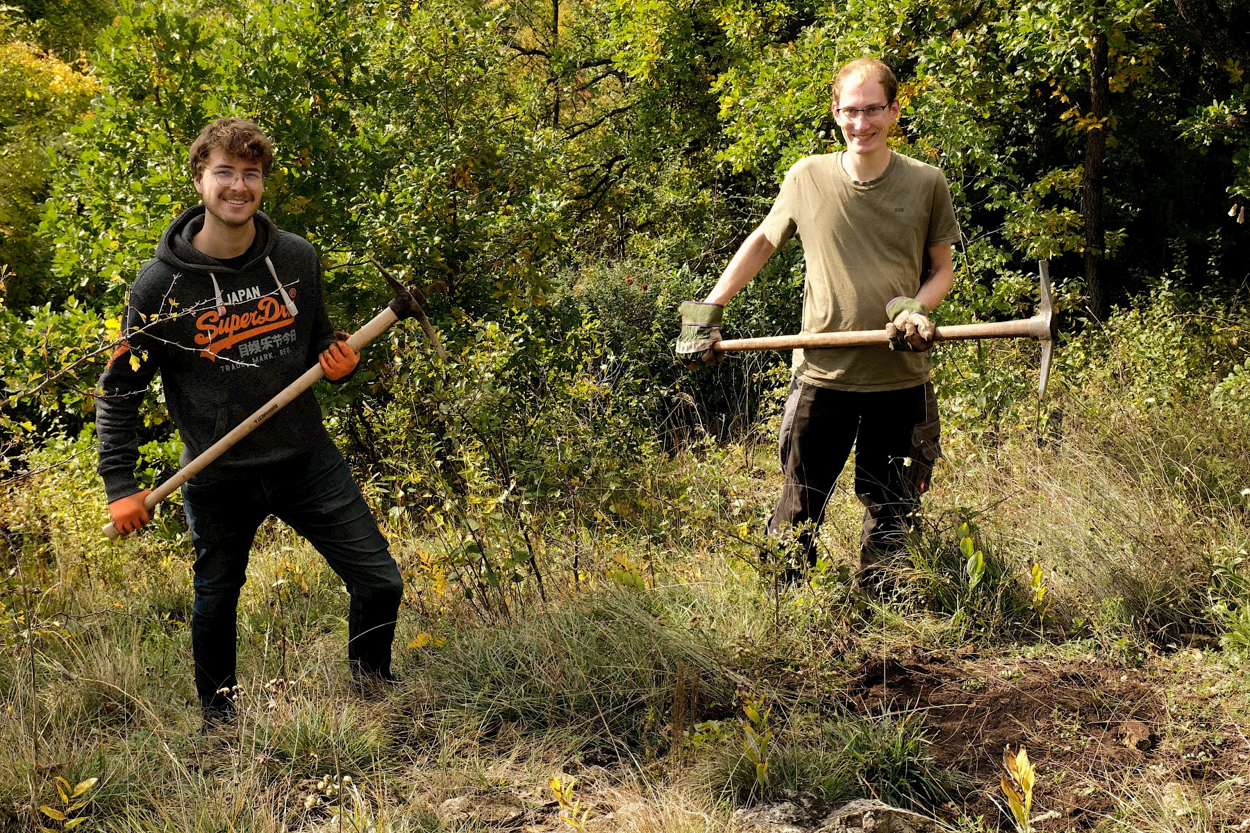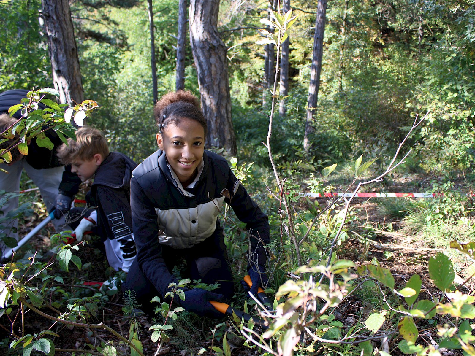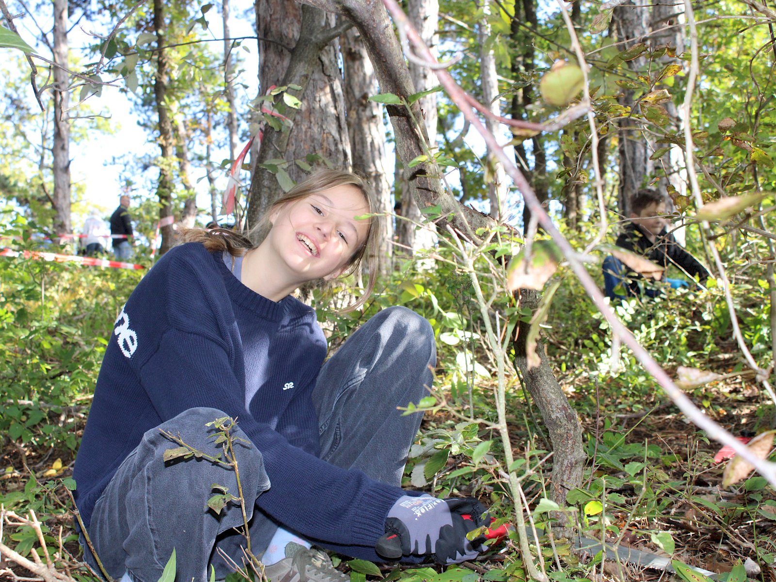 Unsere Naturpädagog:innen vermittelten den Schüler:innen zunächst viel über den Lebensraum Trockenrasen, über die besonderen Tiere und Pflanzen und den großen Artenreichtum. Nach einer gewissenhaften Einschulung zum Werkzeuggebrauch und der Arbeitssicherheit ging es dann motiviert und mit viel Engagement und Freude los. Im Teamwork wurde geschnitten und gesägt, um in Zukunft neue Flächen für wertvollen und artenreichen Trockenrasen zu ermöglichen.