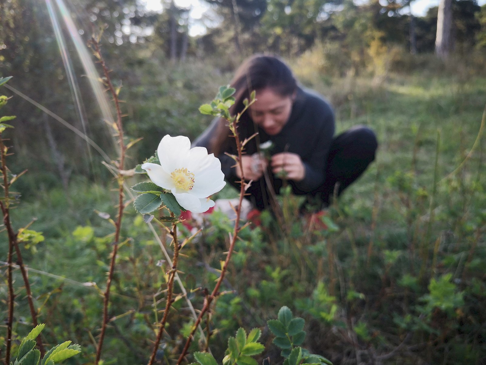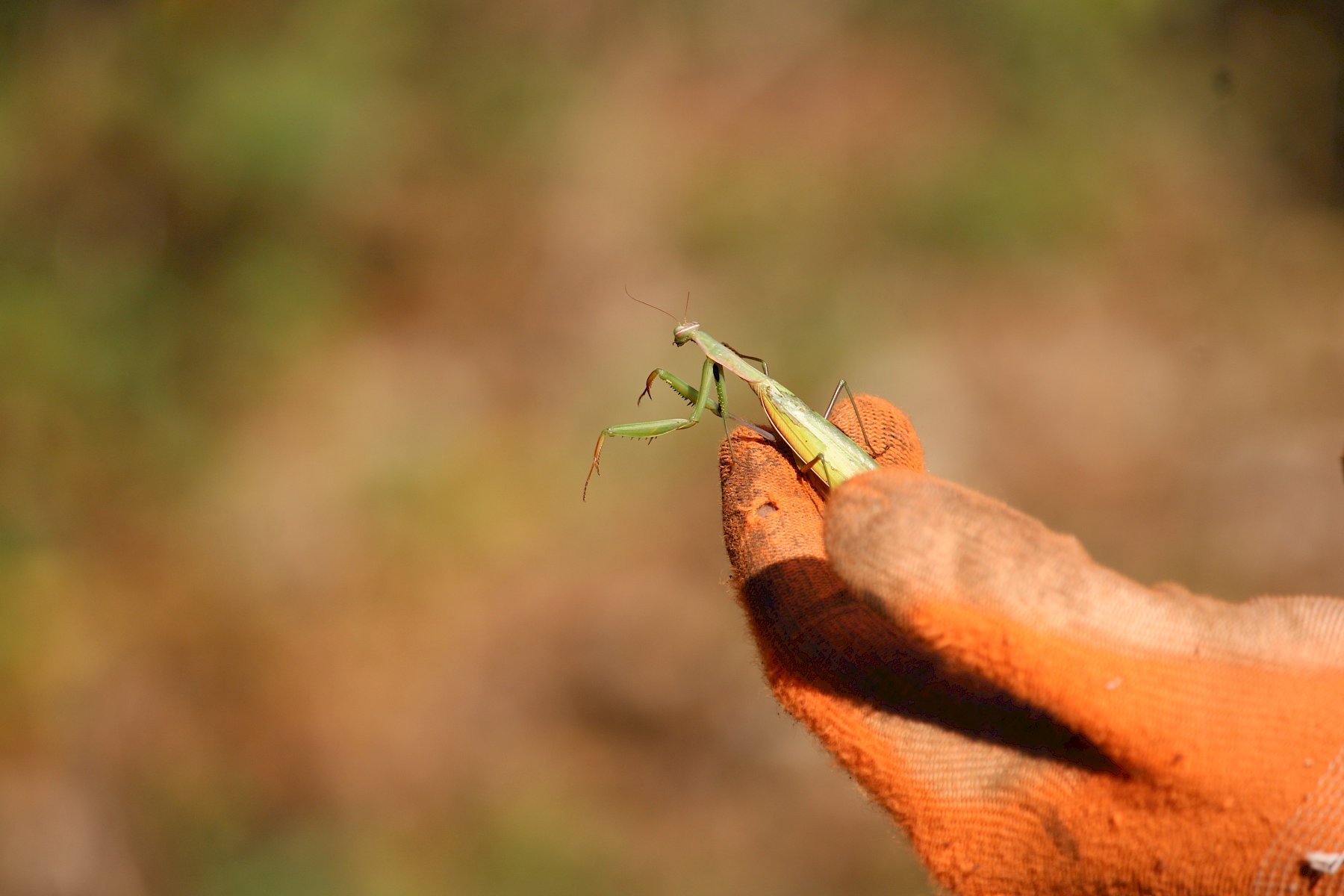 Es gab für die anwesenden Helfer:innen, dank des guten Wetters auch noch einige spannende Funde zu bestaunen: eine Gottesanbeterin (Mantis religiosa) und außergewöhnlich späte Blüten der typischen aber gefährdeten Bibernell-Rose (Rosa spinosissima) und Großen Küchenschelle (Pulsatilla grandis).