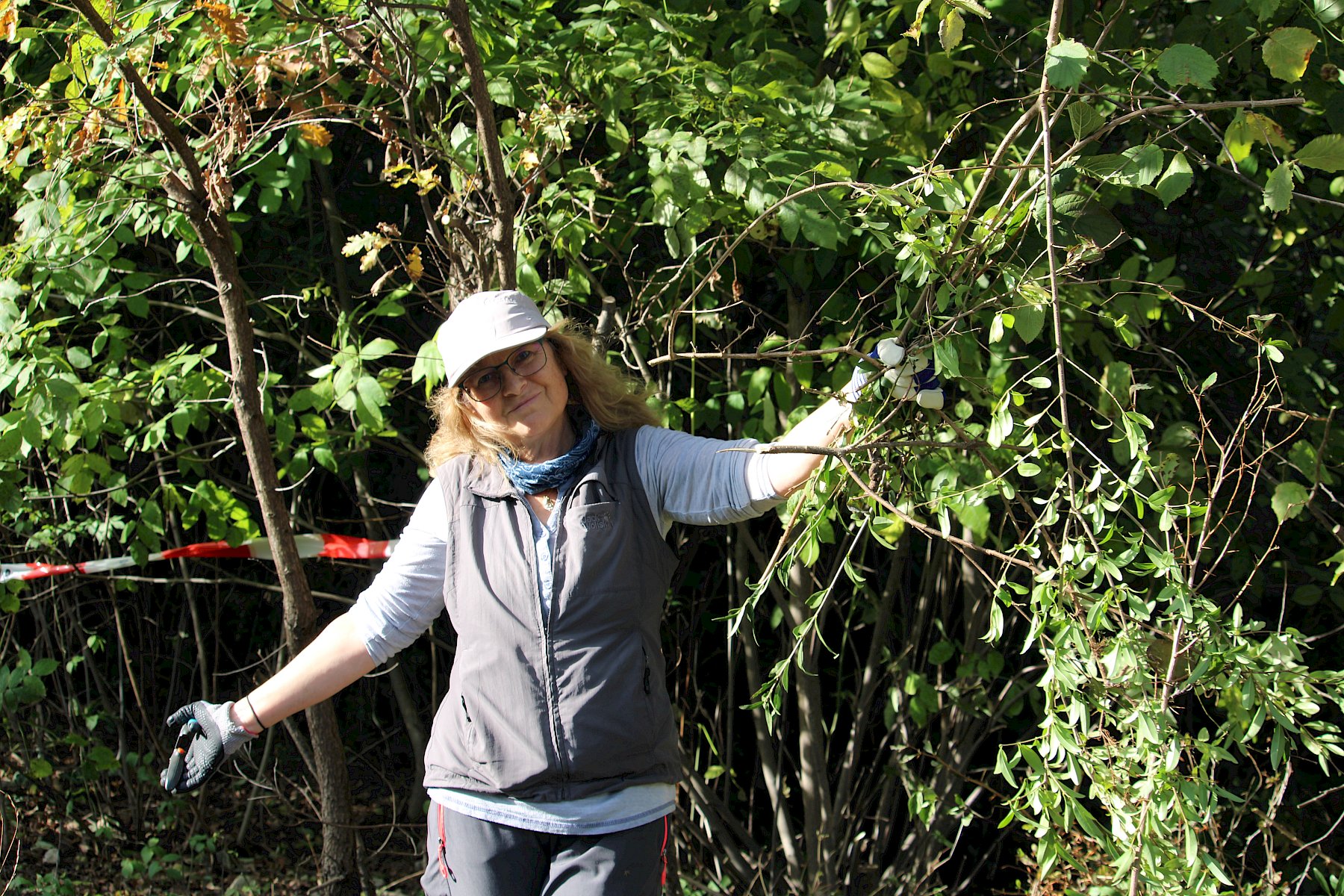 Auch am letzten Tag der Trockenrasen-Pflegetage in Pfaffstätten im Naturschutzgebiet Heferlberg-Glasrauterriegel-Fluxberg hackte und schnitt unser Team zusammen mit Helfer:innen aus Pfaffstätten am Vormittag Liguster (Ligustrum vulgare), Eschen (Fraxinus excelsior) und Hartriegel (Cornus sanguinea) aus, damit diese die artenreichen und schützenswerten Trockenrasen und Steinriegel nicht überwuchern. Insgesamt waren dabei 14 Personen im Einsatz.