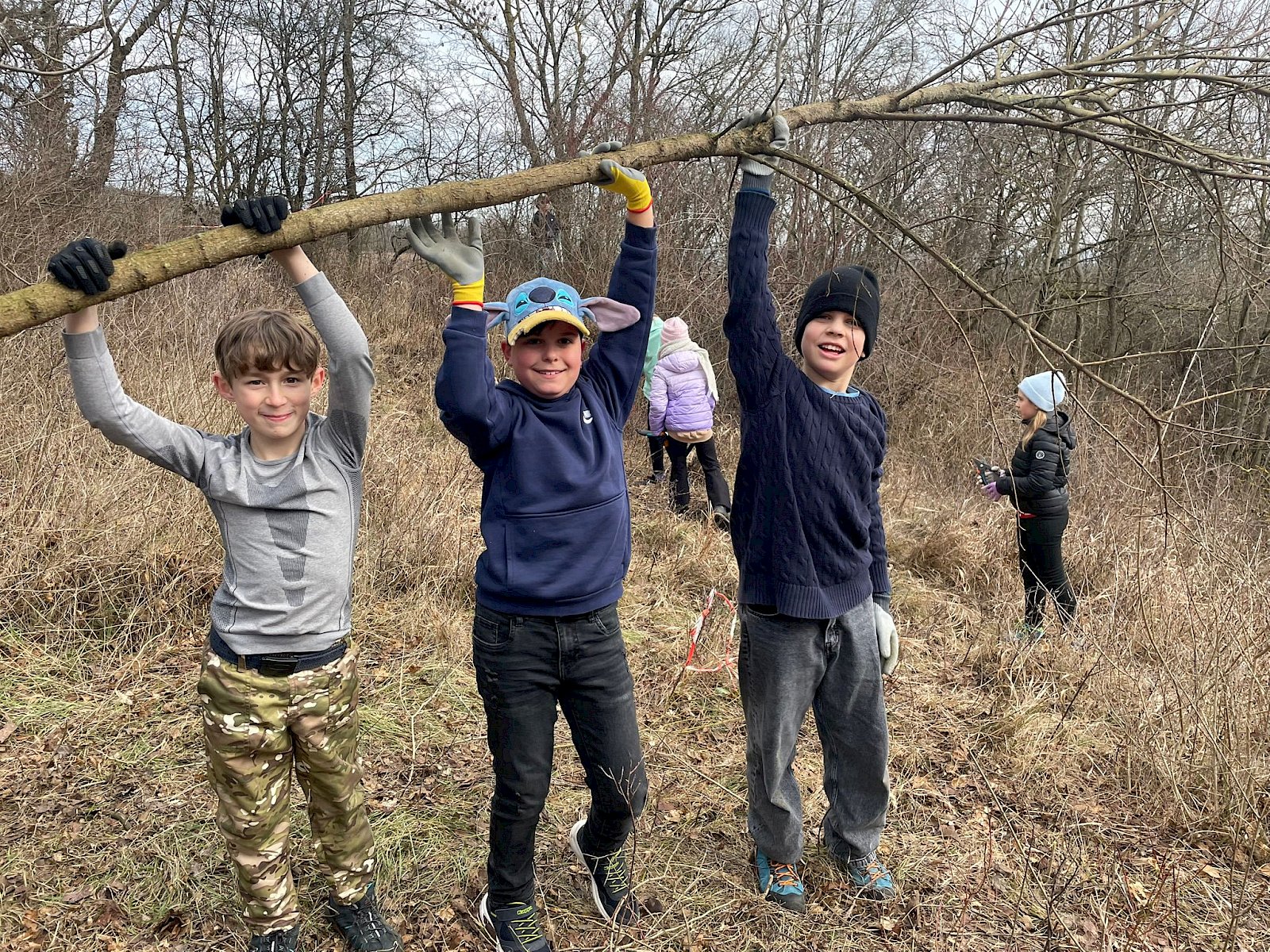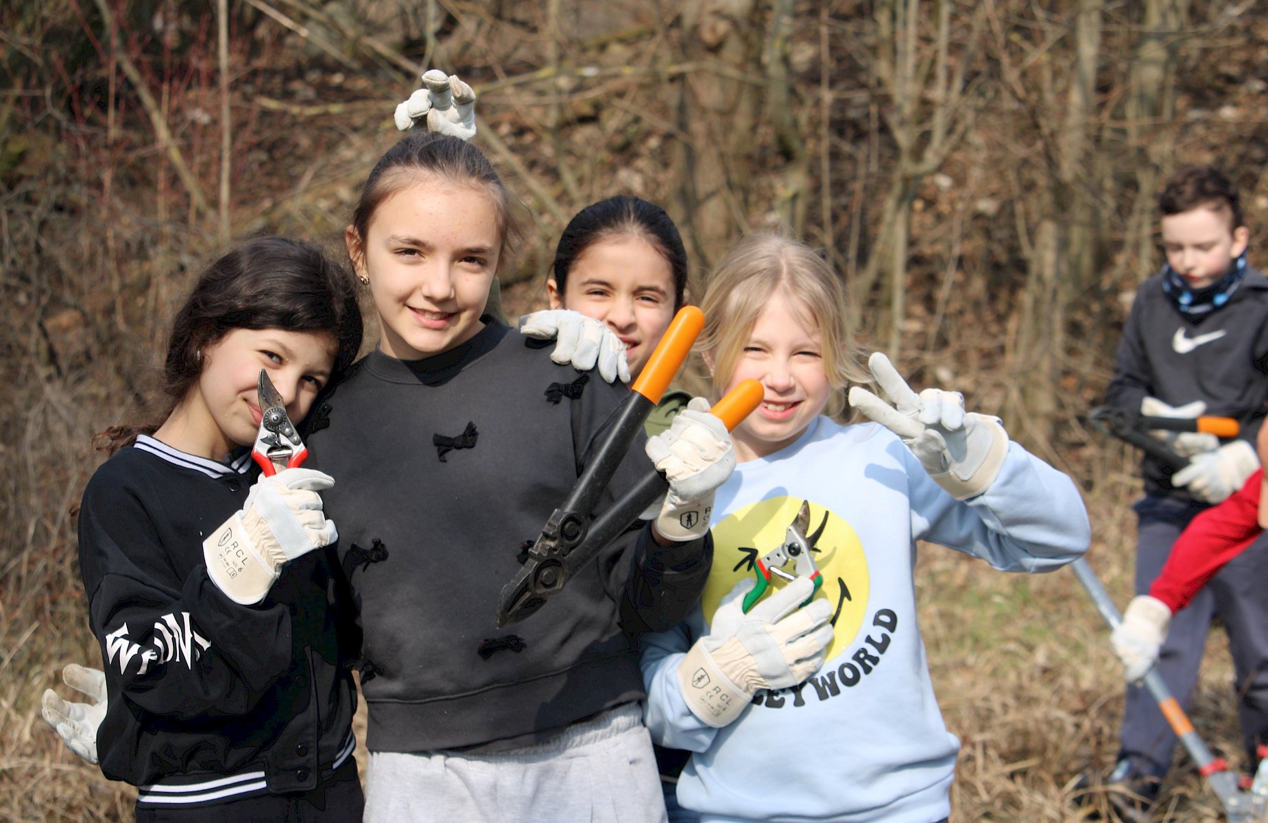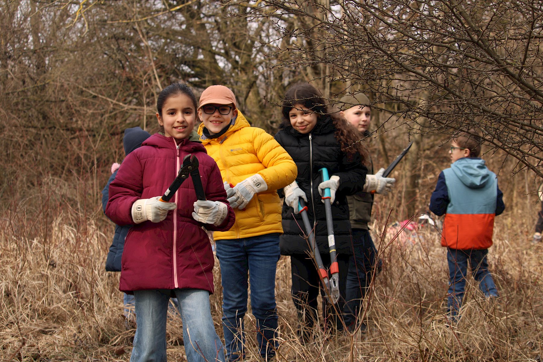 Im Herbst und zeitigen Frühling packen die Kinder und Jugendlichen dann mit Astscheren, Sägen und Hacken im Rahmen von Hands-on-Terminen tatkräftig mit unseren Naturvermittler:innen an. Sie entbuschen die Wiesen- und Weideränder, lichten zu dichte Gebüsche aus und entfernen invasive Neophyten wie Goldrute und Seidenpflanze. Die praktische Arbeit mit Werkzeug macht großen Spaß, trainiert handwerkliche Fähigkeiten und Teamarbeit und lässt die jungen Helfer:innen Selbstwirksamkeit erleben.