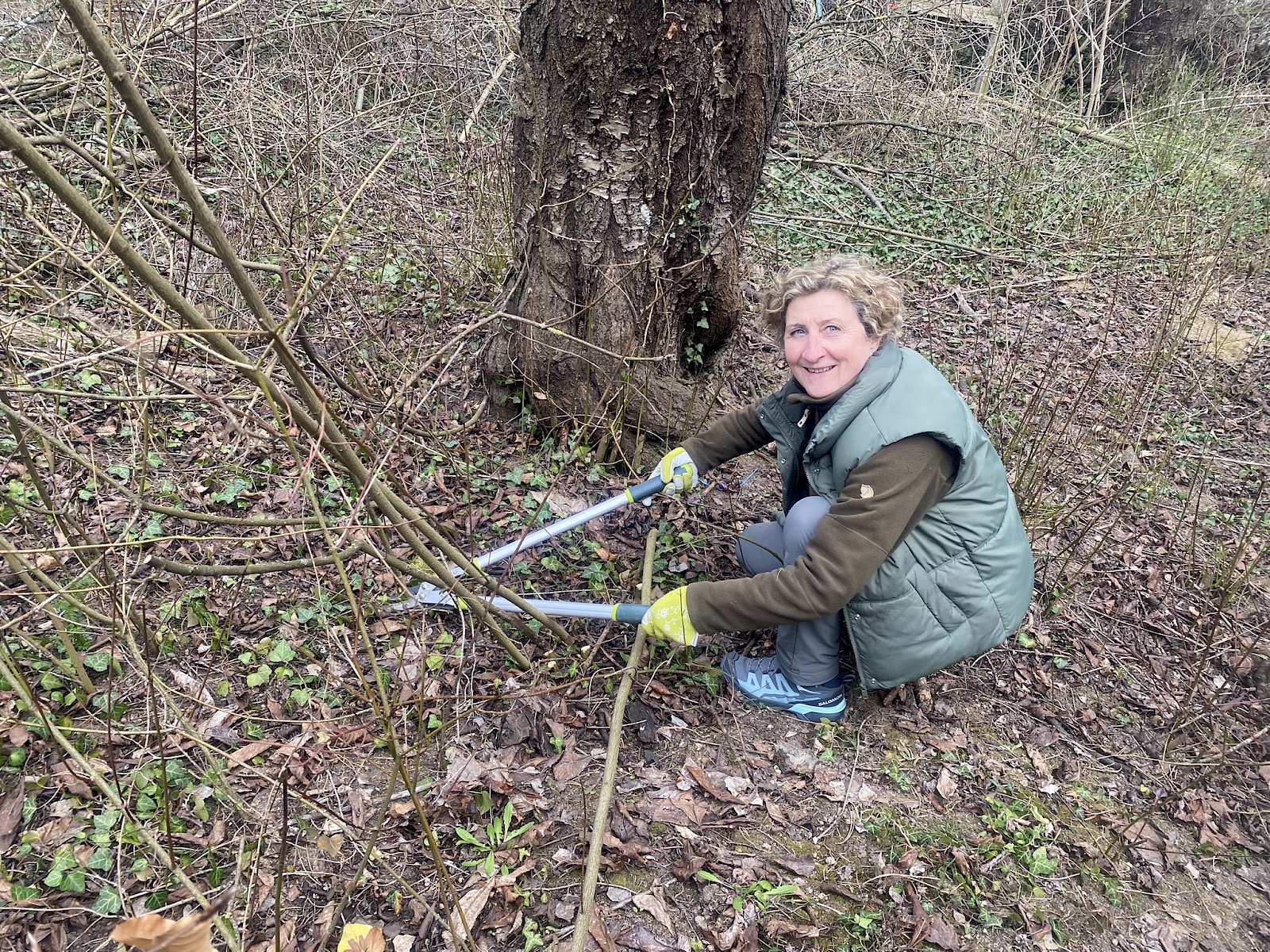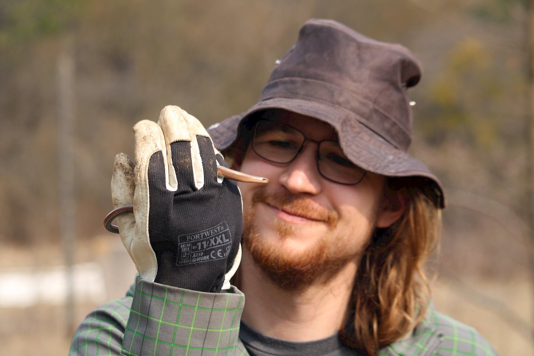 In der wohlverdienten Mittagspause gab es eine köstliche Verpflegung mit Schnitzel- und Bärlauchsemmeln, selbstgebackenem Kuchen sowie frischem Kaffee. Nach dieser hervorragenden Stärkung ging es motiviert in den nicht weniger arbeitsreichen Nachmittag, bei dem nochmal ordentlich gehackt, geschnitten und gesägt wurde. Zudem freuten wir uns über eine Blindschleiche (Anguis fragilis), die aus nächster Nähe beobachtet werden konnte.