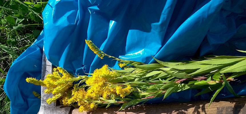Im Rahmen des heutigen Management-Einsatzes waren ein Mitarbeiter und eine Praktikantin des LPV auf den Fischerwiesen im Einsatz, um Goldruten zu entfernen. Die Pflanze wurde entweder händisch oder mit dem Krampen möglichst mitsamt den Wurzeln entfernt. Waren schon Blüten ausgebildet, wurden diese mitgenommen und im Restmüll entsorgt. Dies ist wichtig, da durch eine Entsorgung im Biomüll die Pflanzen eventuell wieder ausgebracht werden würden. Dies soll natürlich verhindert werden.