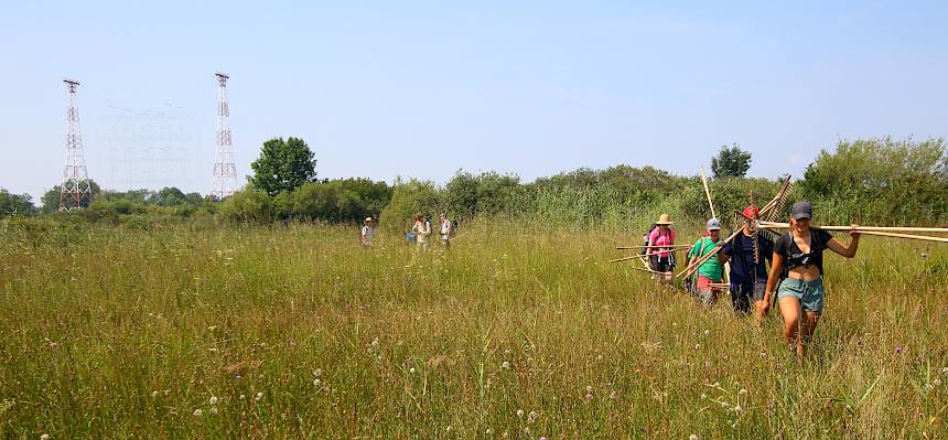 Der Naturschutz-Einsatz blieb nicht unbemerkt: Umweltgemeinderat Günther Schätzinger stattete uns einen Besuch ab und bedankte sich für unseren engagierten Einsatz. Auch Ernst Spitzbart, Leiter der ORS Kurzwellen-Sendestation Moosbrunn, bot im Rahmen eines Vortrags spannende technische Einblicke. Am Gelände befindet sich seit 1959 eine Großsendeanlage der Österreichischen Rundfunksender GmbH (ORS), die auch die Grundeigentümerin ist. Die dortigen Rundfunksendeanlagen gehören zu den leistungsstärksten Mittel- und Kurzwellensendern in Europa und sind heute noch in Betrieb. Nobert Sauberer vom NÖ Schutzgebietsnetzwerk gab den Teilnehmer*innen am ersten Tag einen vielfältigen ökologischen und historischen Einblick in das Gebiet.