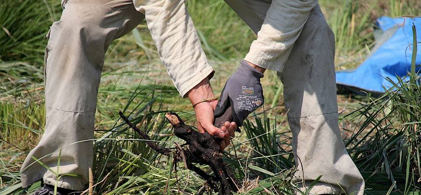 Da das Areal stellenweise sehr nass und der Boden dadurch sehr weich ist, wurden die nassen Teilbereiche im Herrngras seit über 40 Jahren nicht mehr gemäht. Schilf und Gehölze haben sich ausgebreitet und drohen die seltenen Niedermoor-Arten zu verdrängen. Um dem Verlust dieses bemerkenswerten Lebensraums entgegen zu wirken, organisierten wir einen zweitägigen Pflegeeinsatz im Herrngras. Vorbereitend dafür wurden von uns bereits am Samstag davor zwei Teilflächen mit dem Balkenmäher gemäht.