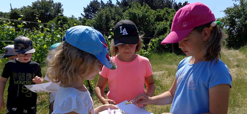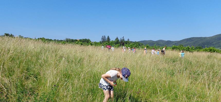 Viel Zeit stand für das Erforschen der Wiesen am Brunner Berg zur Verfügung. Auf den Wiesenflächen konnten die Kinder mit Becherlupen Insekten und Spinnentiere suchen. Beim Erstellen eines Wiesen-Klebebilds machten sich die Schüler*innen mit den unterschiedlichen Blumen und Gräsern vertraut und entdeckten die Vielfalt der Wiese. Eine Jausen-Pause in freier Natur zur Stärkung zwischendurch durfte natürlich nicht fehlen und einige Spiele zum Thema Wiese lockerten das Vermitteln der Wieseninfos auf und sorgten für Spaß und Bewegung.