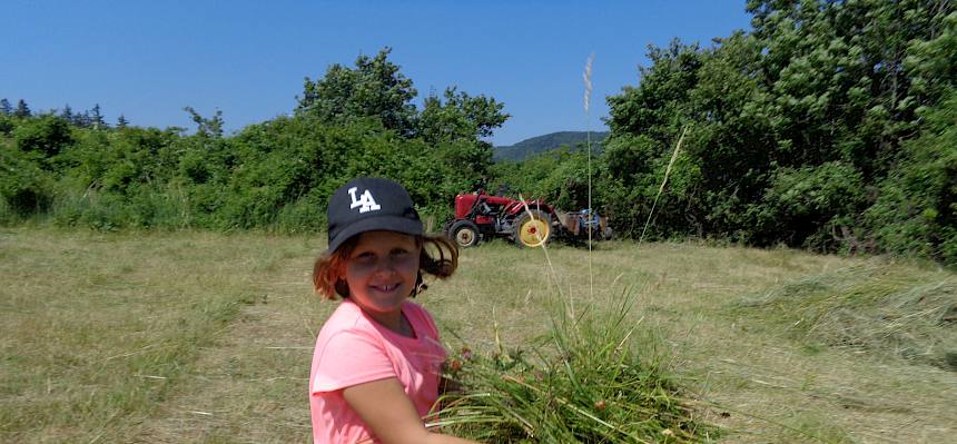 Das Sensenmähen mit Heinz Peikert von Stepping Woods machte den Kindern besonders viel Spaß. Hier erfuhren sie, wie die Wiesen früher gemäht wurden als es noch keine Traktoren gab und dass auch heute besonders steile Hänge noch mit der Sense gemäht werden müssen. Danach durfte jedes Kind mit Hilfe von Heinz Peikert selbst versuchen ein Stückchen Wiese mit der Sense zu mähen. Die anderen Kinder konnten inzwischen das abgemähte Gras auf traditionellen „Heumandln“ zum Trocknen aufhängen.